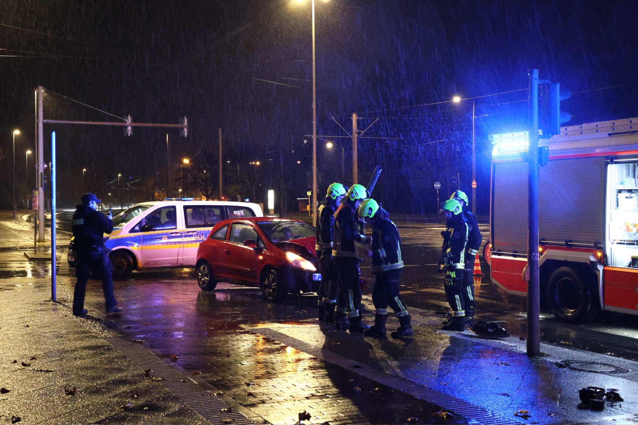 Nach Angaben der Berliner Polizei war ein 67-jähriger Mann gegen 4.45 Uhr bei regennasser Fahrbahn auf der Landsberger Allee unterwegs, als er aus bislang ungeklärter Ursache von der Fahrbahn abkam. An der Kreuzung zur Ringenwalder Straße prallte sein Fahrzeug gegen eine dortige Fahrradampel, die durch den Aufprall sichtbar beschädigt wurde.