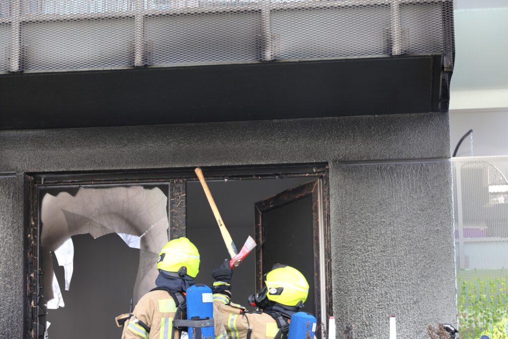 Die Feuerwehr verschaffte sich anschließend gewaltsam Zugang zur Wohnung, indem eine Scheibe eingeschlagen wurde. Hintergrund war die mögliche Rauchausbreitung in den Innenräumen, teilt der Pressedienst der Berliner Feuerwehr mit. Die Einsatzkräfte kontrollierten die Wohnung auf versteckte Glutnester und belüfteten sie gründlich. Ein verbrannter Wäscheständer sowie Balkonmobiliar wurden vom Balkon entfernt und endgültig abgelöscht.
