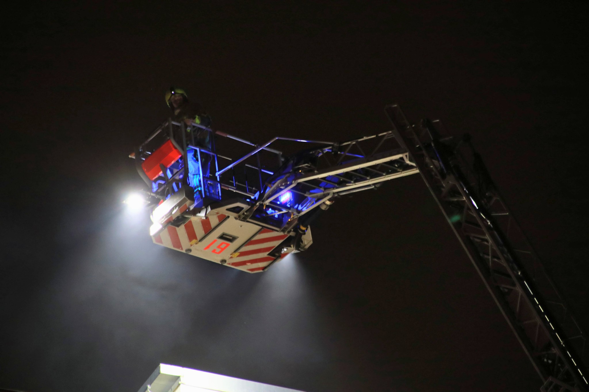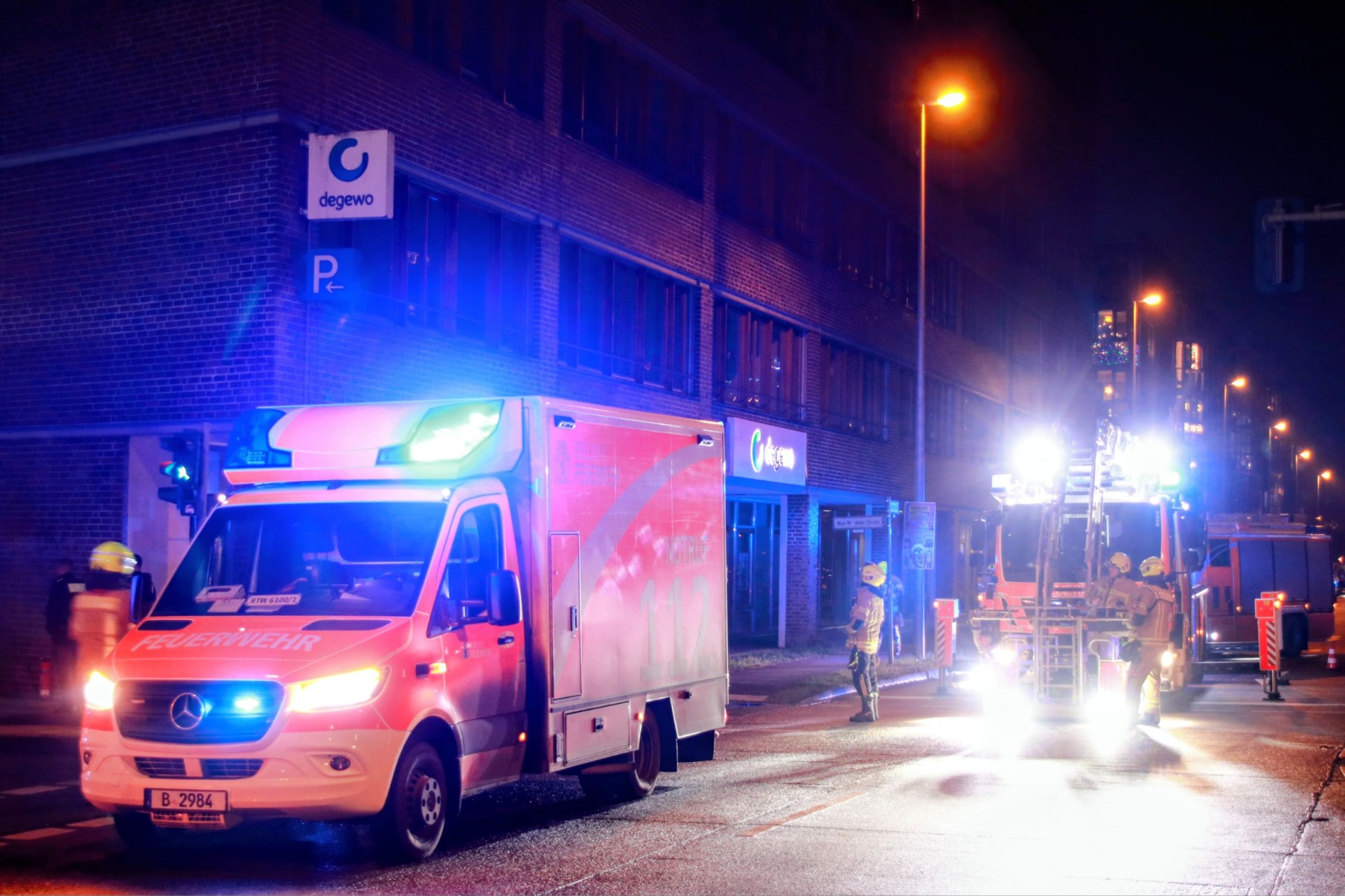 Die Berliner Feuerwehr traf kurz darauf ein und brachte den Brand rasch unter Kontrolle. Da zeitgleich Rauch aus dem Dachbereich aufstieg, wurde zusätzlich eine Drehleiter eingesetzt, um Dach und umliegende Strukturen von außen zu kontrollieren.