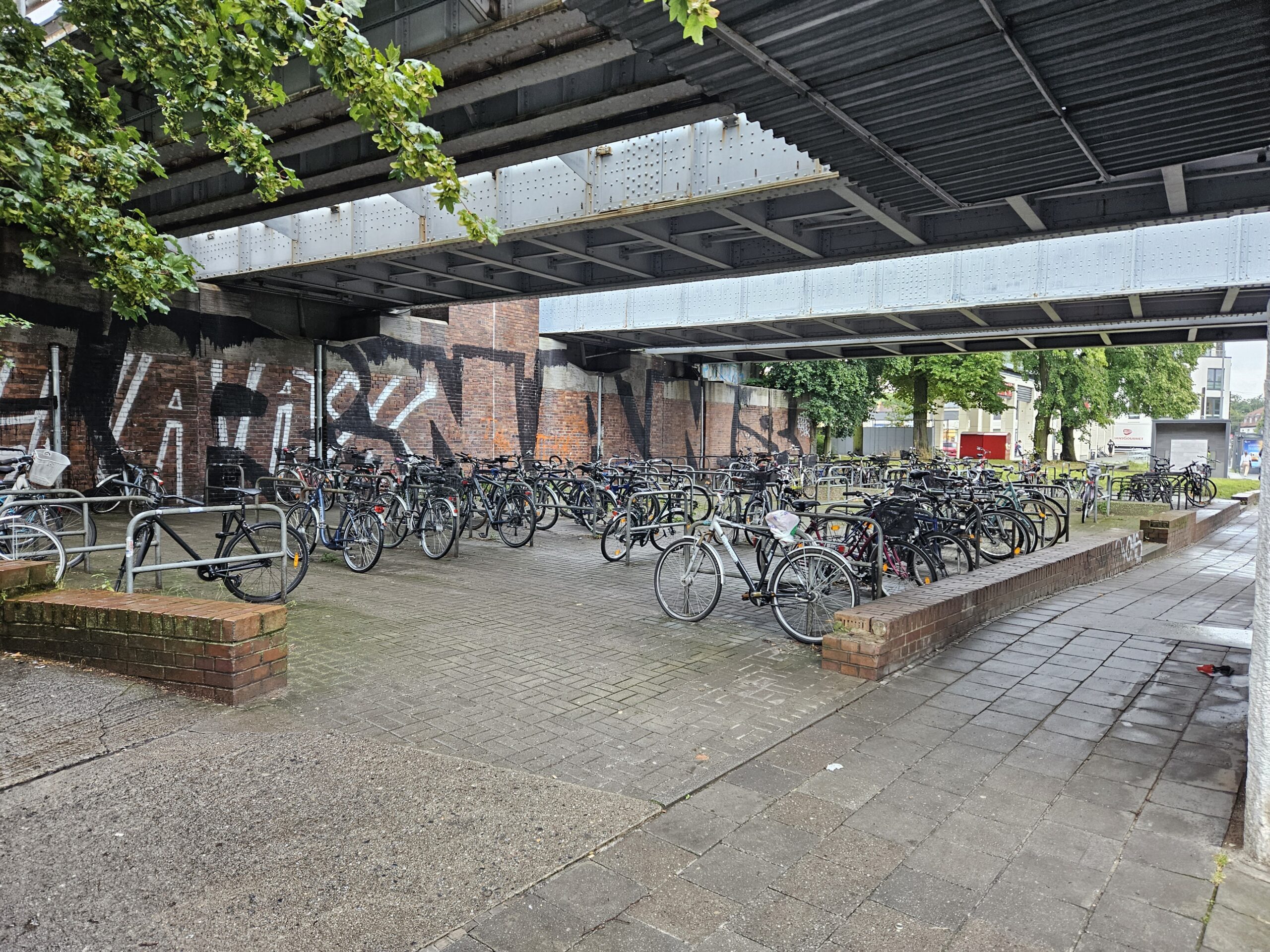 Wie auf unseren Bildern vom letzten Sommer zu sehen ist, sind die aktuellen Abstellplätze unter der S-Bahn-Brücke äußerst unattraktiv.