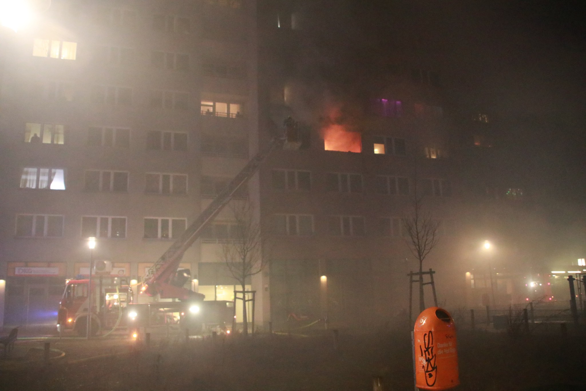 Kurz vor 20 Uhr brach in einer Wohnung in der vierten Etage eines 21-stöckigen Hochhauses aus bislang ungeklärter Ursache ein Feuer aus.