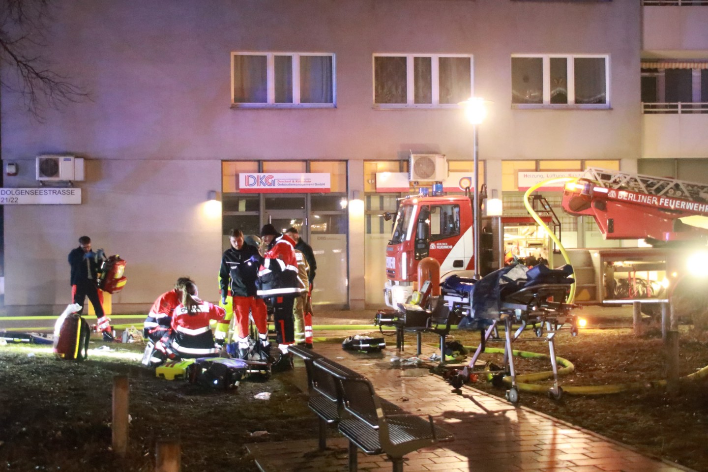Bei dem schweren Wohnungsbrand in der Dolgenseestraße im Berliner Ortsteil Friedrichsfelde (Bezirk Lichtenberg) kam es am Mittwochabend zu einem Großeinsatz der Berliner Feuerwehr.