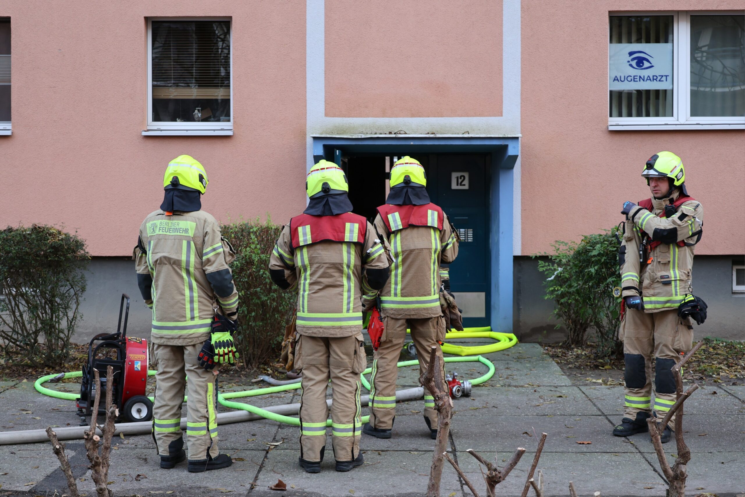 Die ersten eintreffenden Kräfte, darunter die Freiwillige Feuerwehr Hellersdorf, stellten bei der Erkundung der Lage einen brennenden Kinderwagen im Eingangsbereich fest. Der Brand konnte zügig gelöscht werden, das Treppenhaus wurde anschließend belüftet. Personenschäden gab es glücklicherweise nicht. Im Eingangsbereich kam es im Treppenhaus zu Sachschäden.