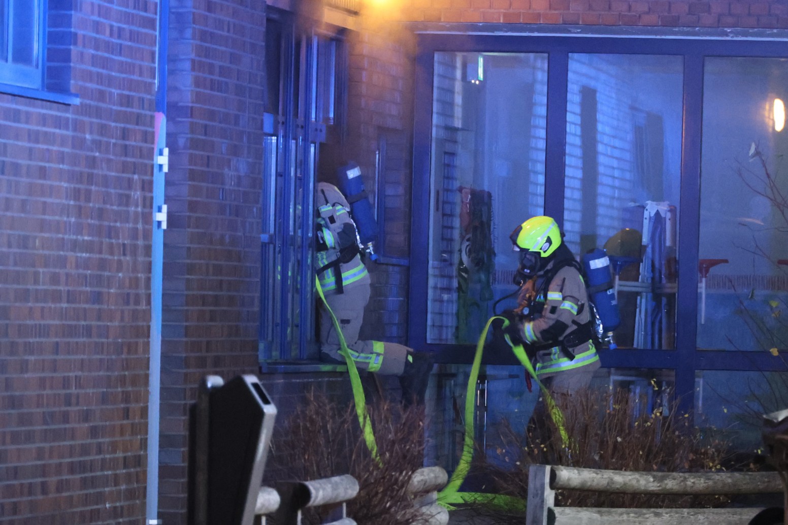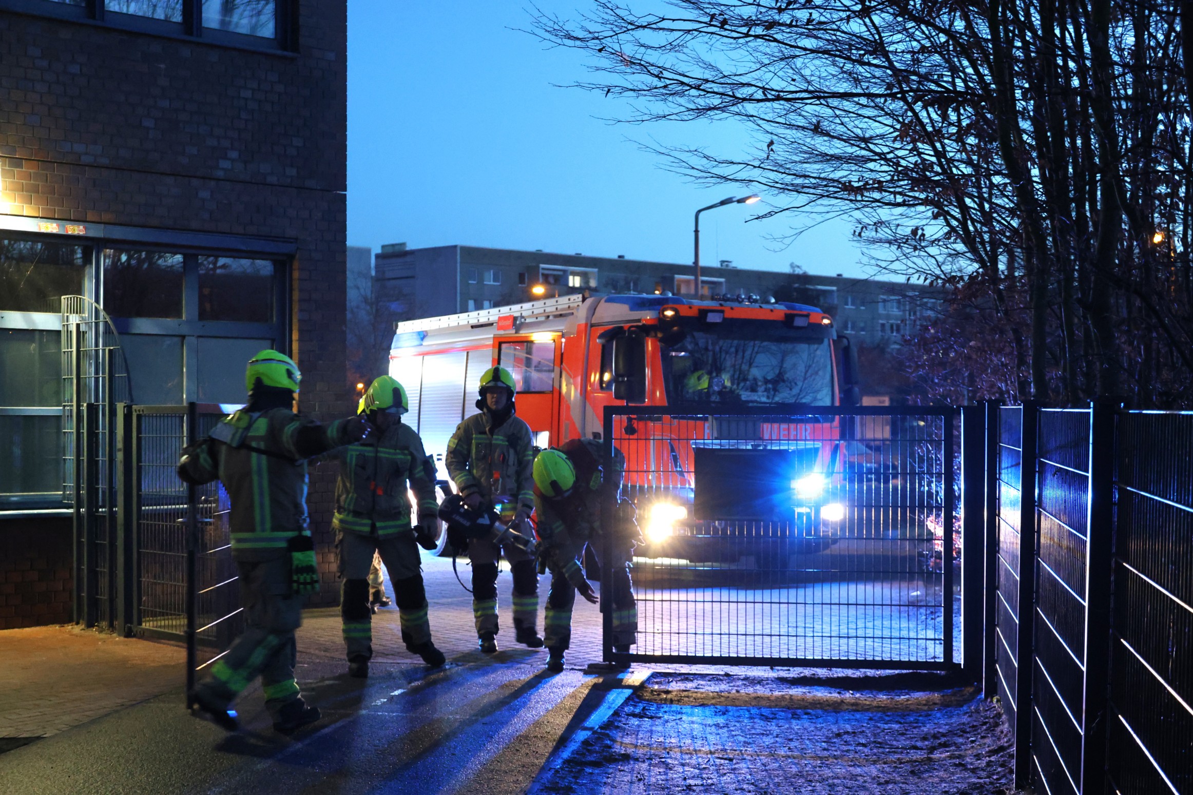 Um auf das Schulgelände zu gelangen, öffneten die Einsatzkräfte das verschlossene Schultor mithilfe eines hydraulischen Rettungsgeräts (Spreizer). Der Brand im Erdgeschoss konnte anschließend schnell gelöscht werden. Beschädigtes Mobiliar wurde von der Feuerwehr ins Freie gebracht.