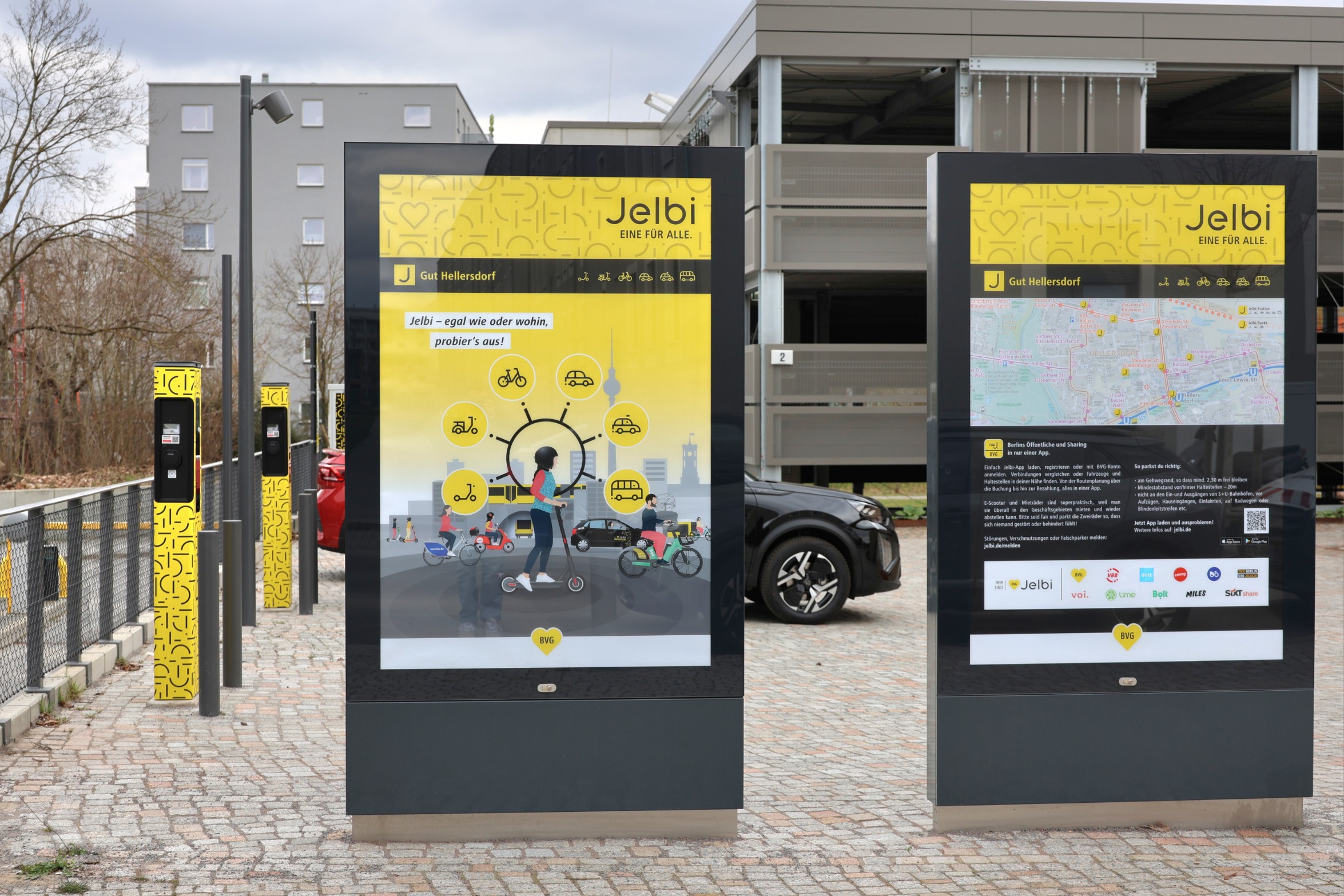 Im Quartier Stadtgut Hellersdorf ist eine neue Jelbi-Station in Betrieb gegangen. In Kooperation mit der landeseigenen Wohnungsbaugesellschaft GESOBAU erweitert die BVG-Mobilitätsplattform damit ihr Sharing-Netz im Bezirk – und setzt dabei sogar auf ein ungewöhnliches Design.