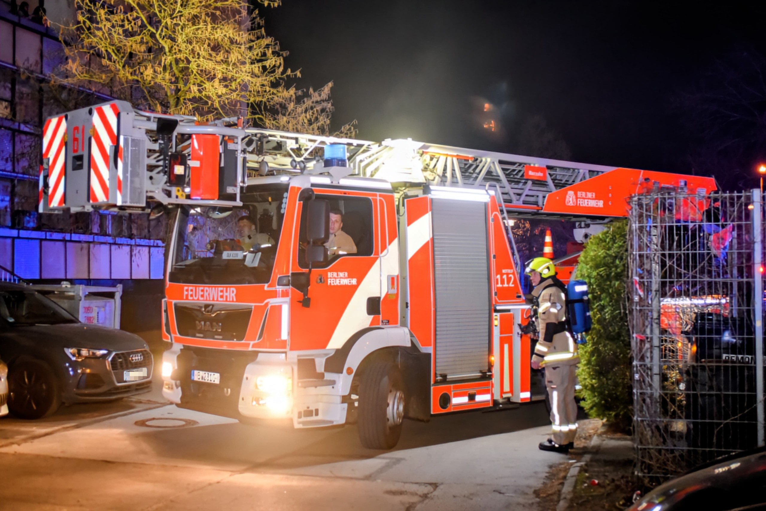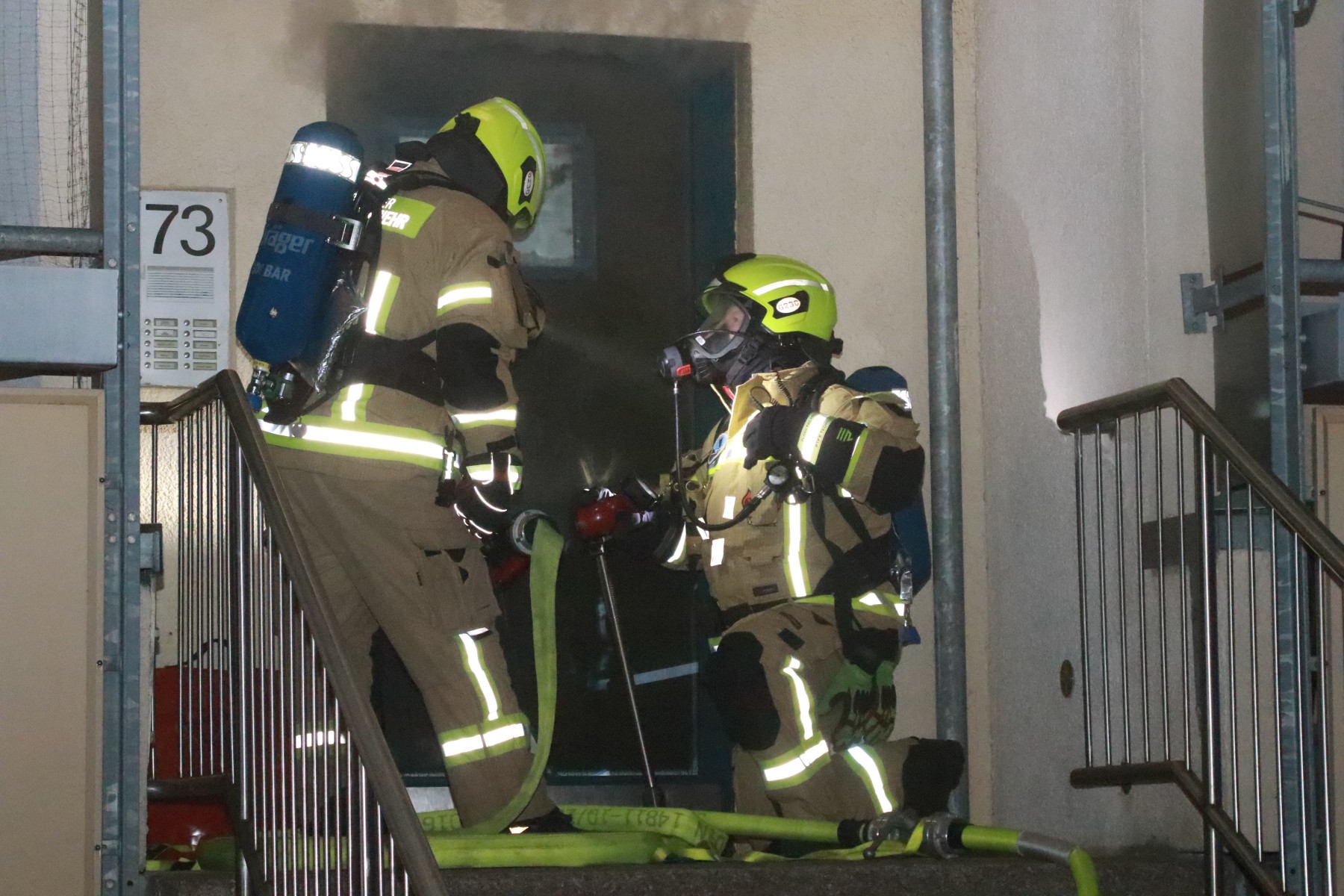 Eine Person wurde von den Einsatzkräften aus dem Gebäude ins Freie gebracht. Angaben zum Gesundheitszustand lagen zunächst nicht vor. Wegen der starken Rauchentwicklung war das Treppenhaus zeitweise nicht begehbar. Über Lautsprecherdurchsagen forderte die Feuerwehr die Bewohner auf, in ihren Wohnungen zu bleiben oder sich auf ihre Balkone zu begeben.