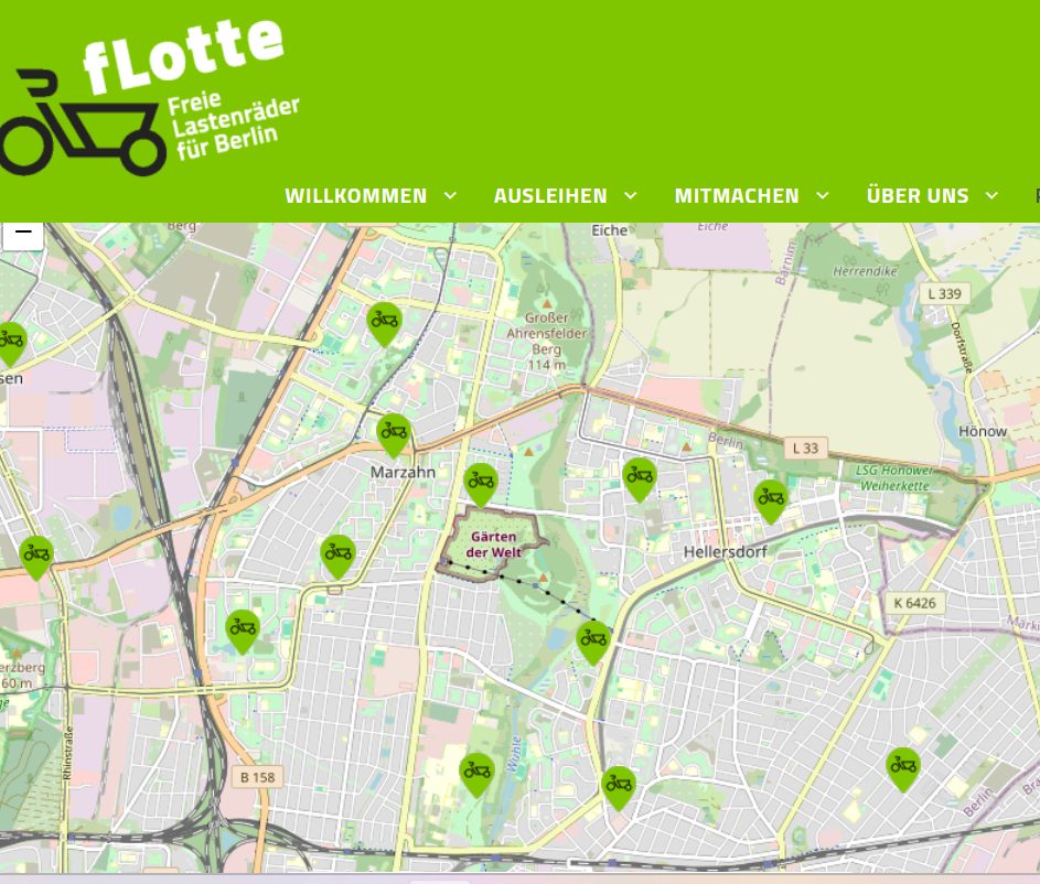 Alle Standorte, Verfügbarkeiten und Informationen zur Buchung gibt es unter: flotte-berlin.de/lastenrad-ausleihen/standorte