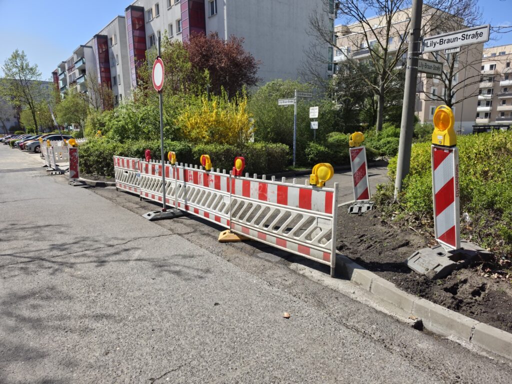 Aufmerksamen Anwohnern dürfte es bereits aufgefallen sein: Die Lily-Braun-Straße ist wieder vollständig befahrbar – eine Umfahrung über den Mieterparkplatz ist nicht mehr nötig.