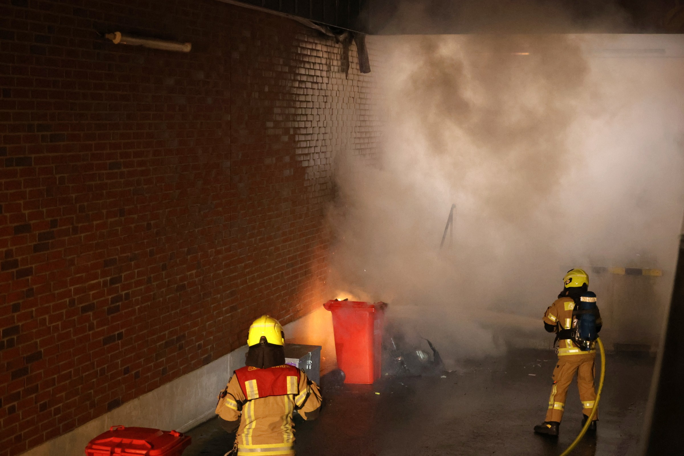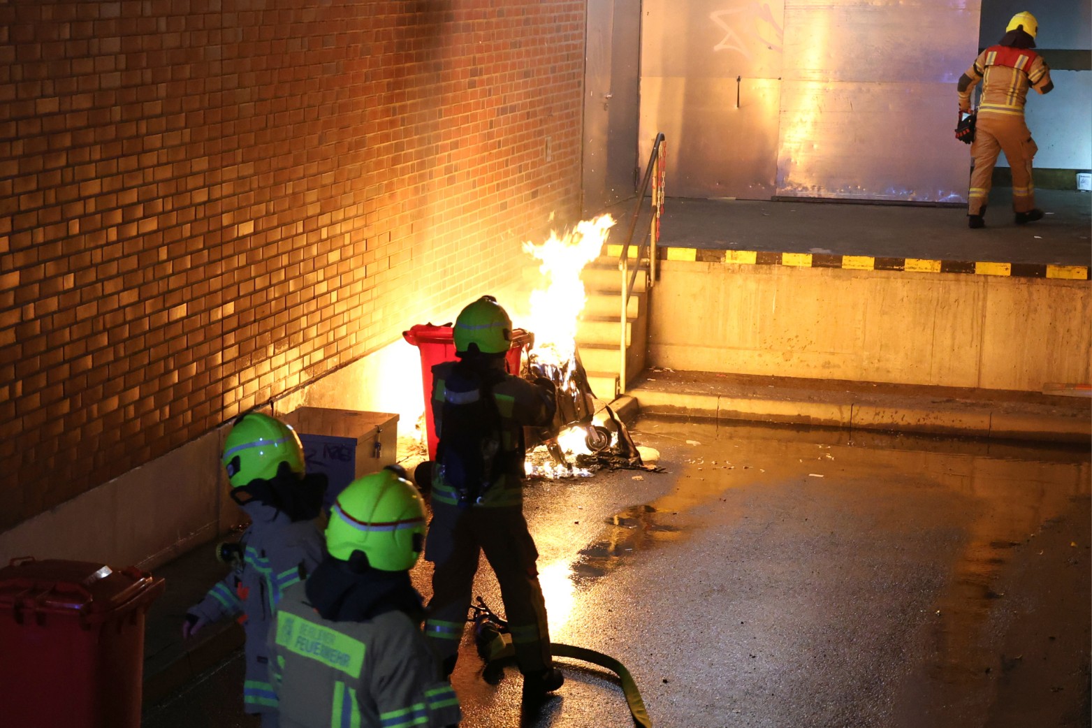Die alarmierten Kräfte der Feuerwehr waren schnell vor Ort und konnten den Brand zügig eindämmen und letztendlich vollständig löschen. Die Fassade wurde mit Wasser gekühlt. Die Müllcontainer wurden beschädigt.