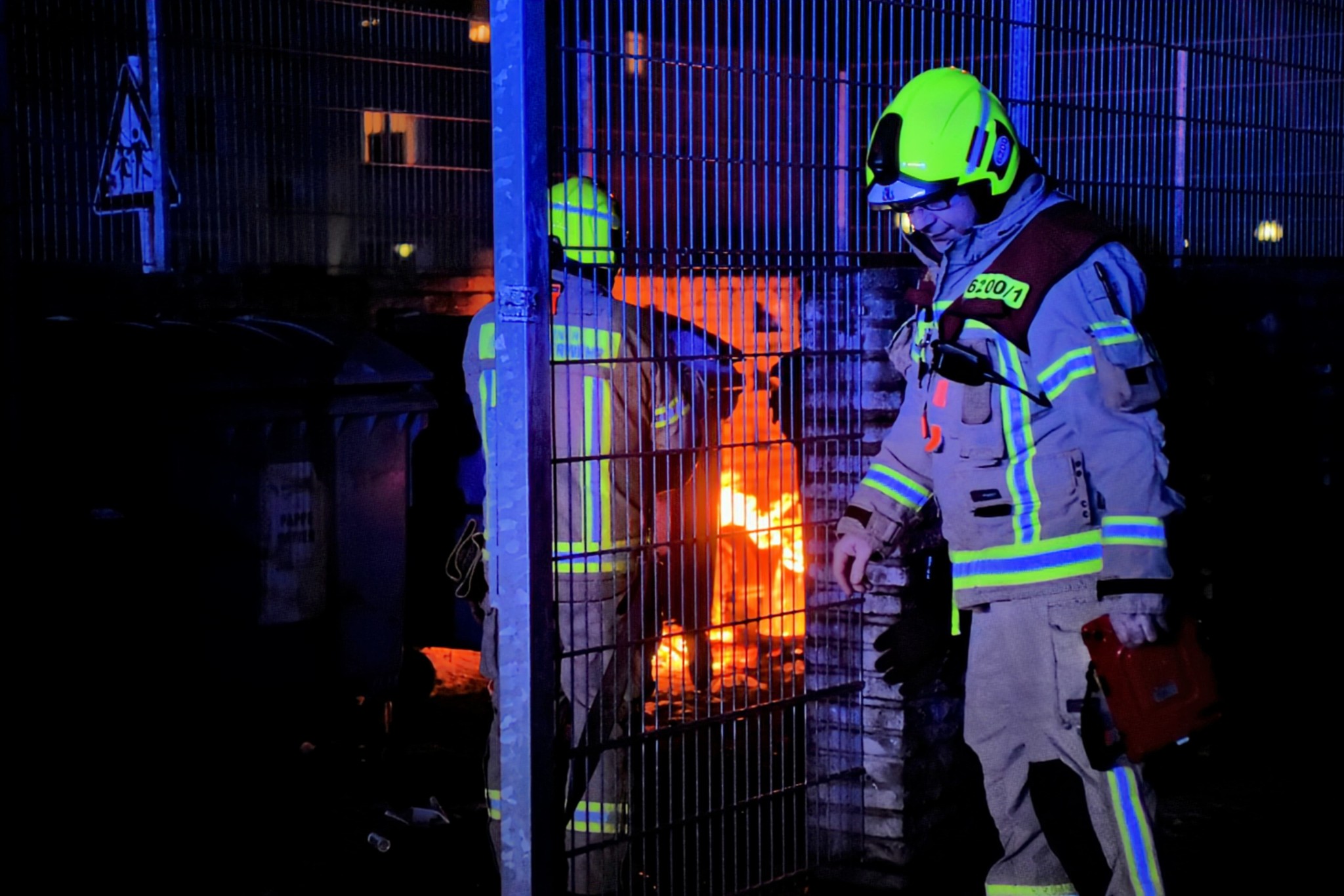 Rund 30 Minuten später folgte der nächste Einsatz: An der Glauchauer Straße, Ecke Nossener Straße, stand erneut ein Müllcontainer in Flammen. Die bereits abrückenden Einsatzkräfte wurden per Funk informiert, kehrten um und löschten auch diesen Brand zügig.