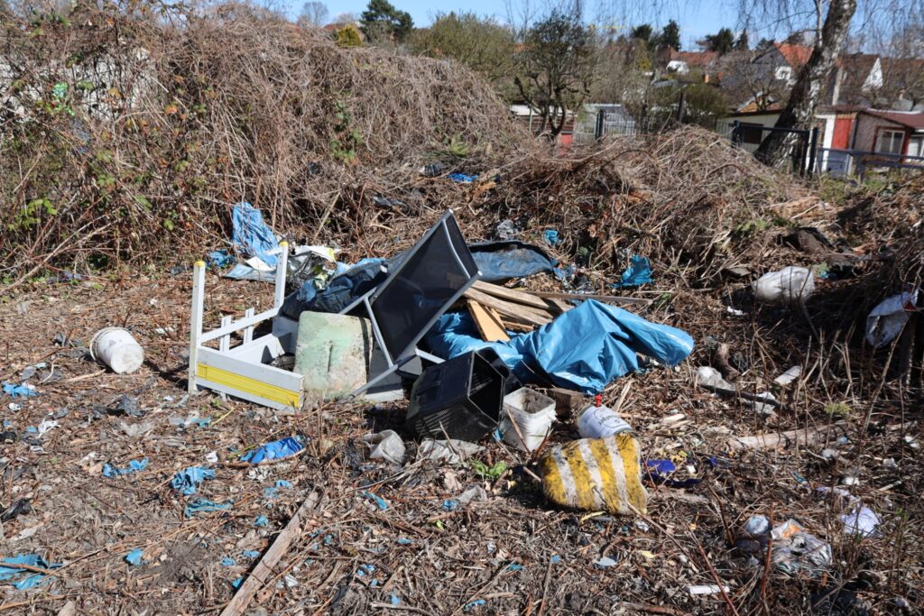 Auf einem ungesicherten Leergrundstück und entlang der Rhinstraße fanden die Freiwilligen erschreckende Mengen an Sperrmüll, Elektroschrott und Sondermüll – teils vergraben, teils offen abgelagert.