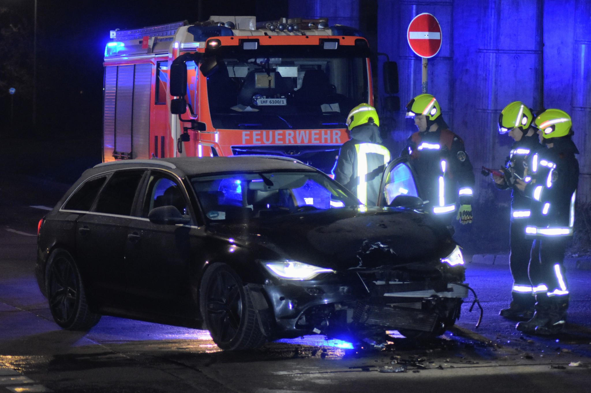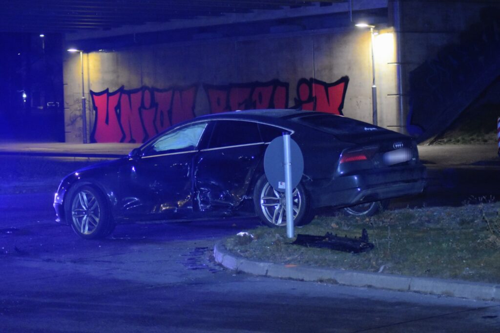 Gegen 3.30 Uhr kam es im Kreuzungsbereich Wuhletalstraße/Märkische Allee zu einem Verkehrsunfall zwischen einem Audi A6 Avant und einem Audi A7. Durch die Wucht des Aufpralls wurde der Audi A7 auf eine Mittelinsel geschleudert.