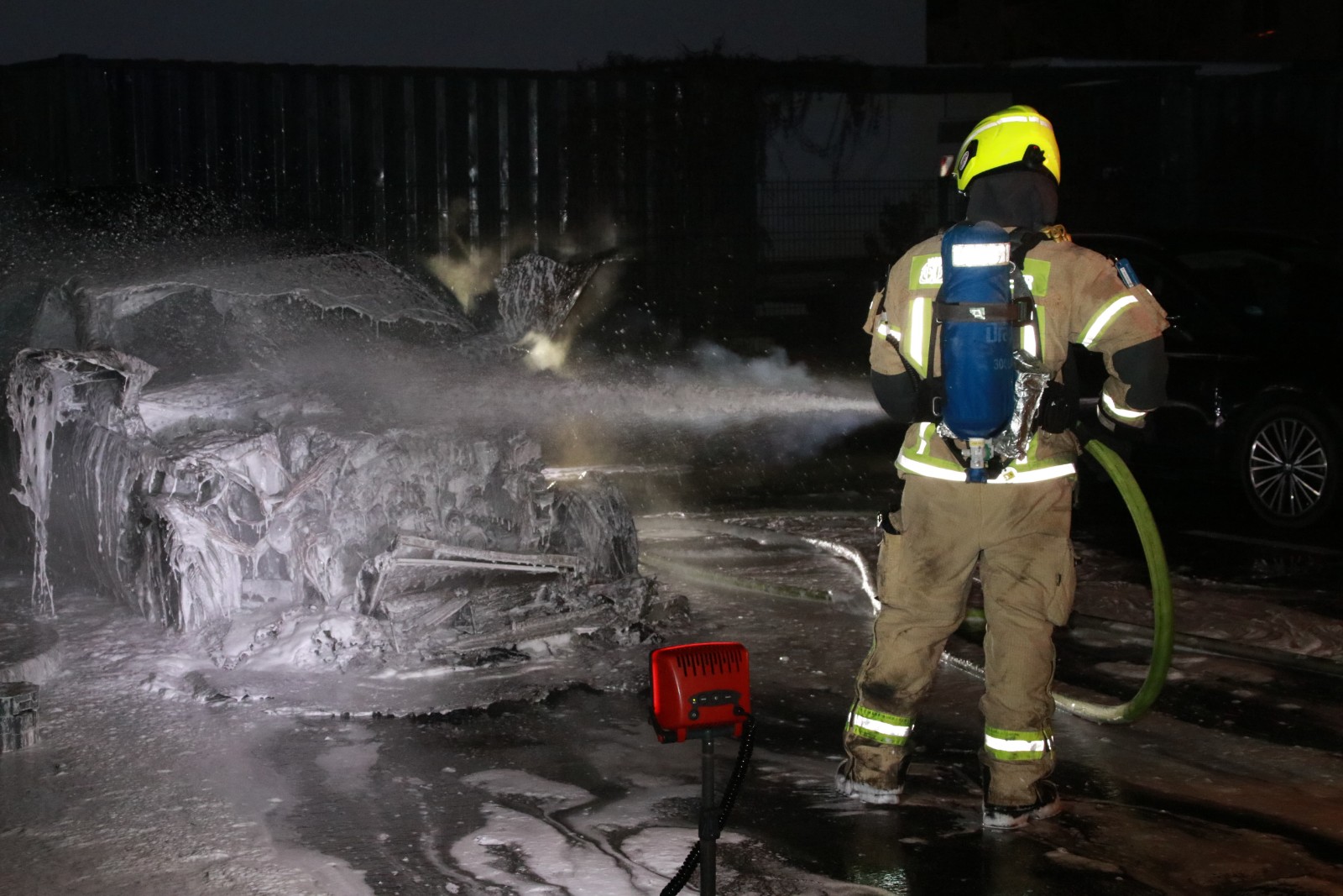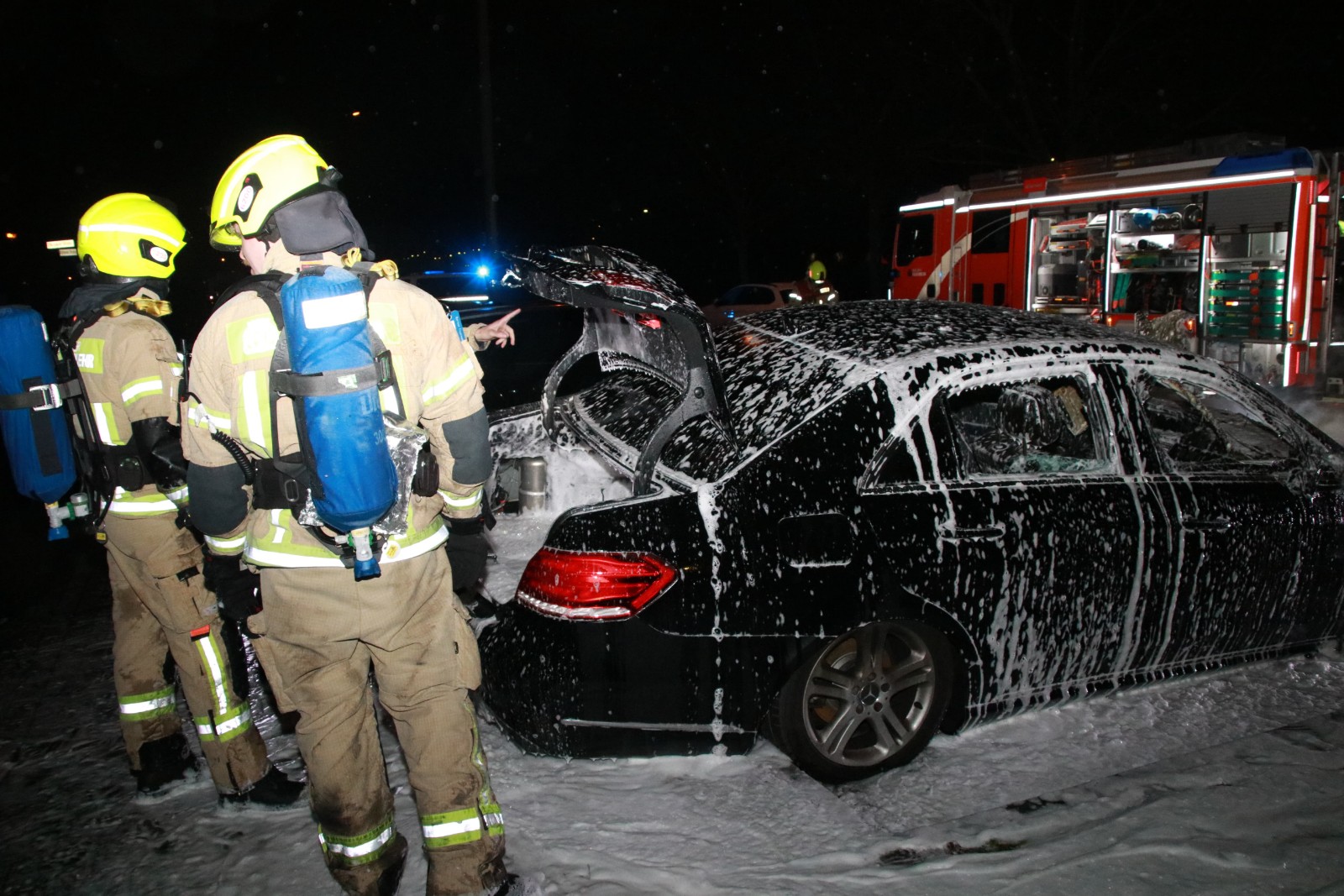 Ein unmittelbar daneben abgestellter BMW mit demselben Halter konnte noch rechtzeitig vom Parkplatz entfernt werden und blieb unbeschädigt. Während des Einsatzes war die Böhlener Straße im betroffenen Bereich zeitweise gesperrt. Die Kriminalpolizei hat vor Ort die Ermittlungen zur Brandursache übernommen.