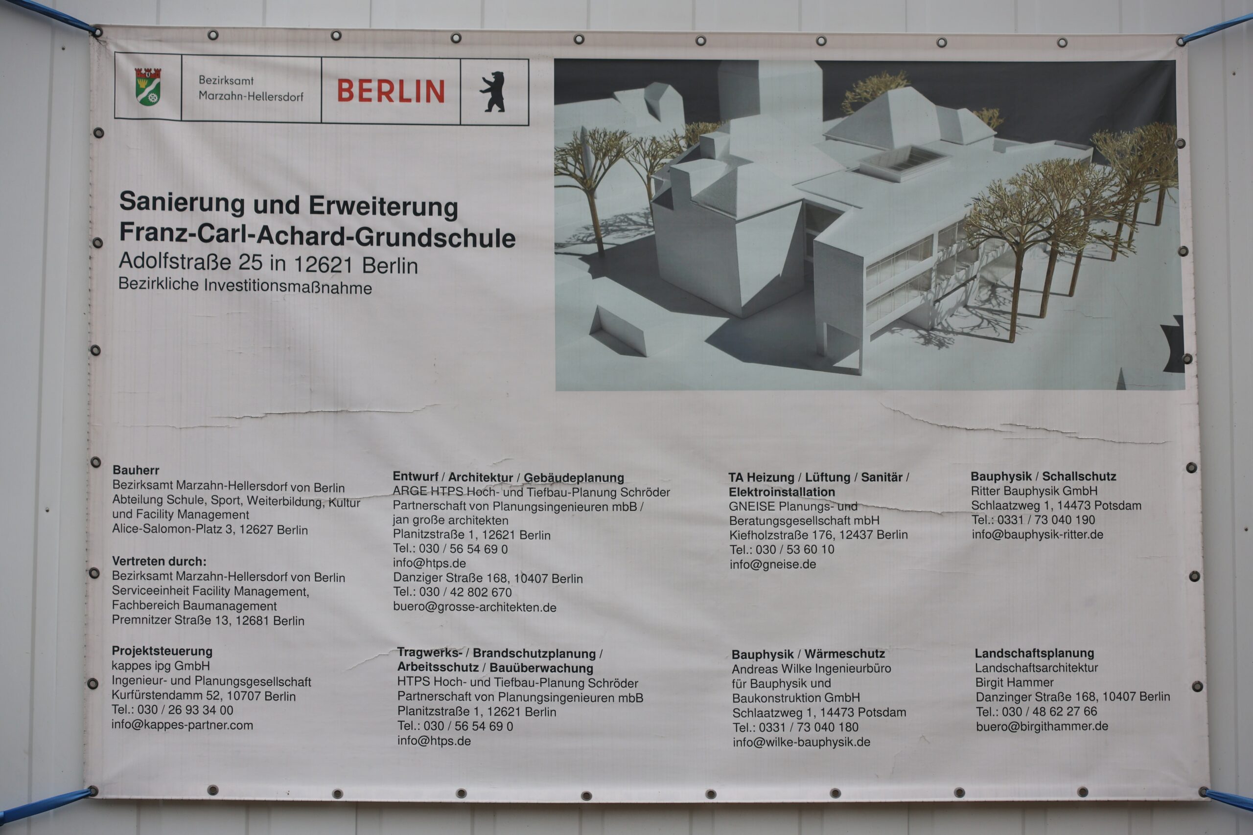 Stefan Bley, Bezirksstadtrat für Schule: „Mit dem heutigen Richtfest – nach eingehender Sanierung und Erweiterung des Schulgebäudes – feiern wir einen entscheidenden Meilenstein in der Geschichte der über hundertjährigen Schule, der heutigen Franz-Carl-Achard-Grundschule. Es ist schon jetzt beeindruckend zu sehen, wie der Erweiterungsbau die historische Substanz von 1911 ergänzt und ein modernes Lernumfeld schaffen wird. Mein großer Dank gilt allen Beteiligten, die an diesem wichtigen Projekt für unseren Bezirk mitwirken.“
