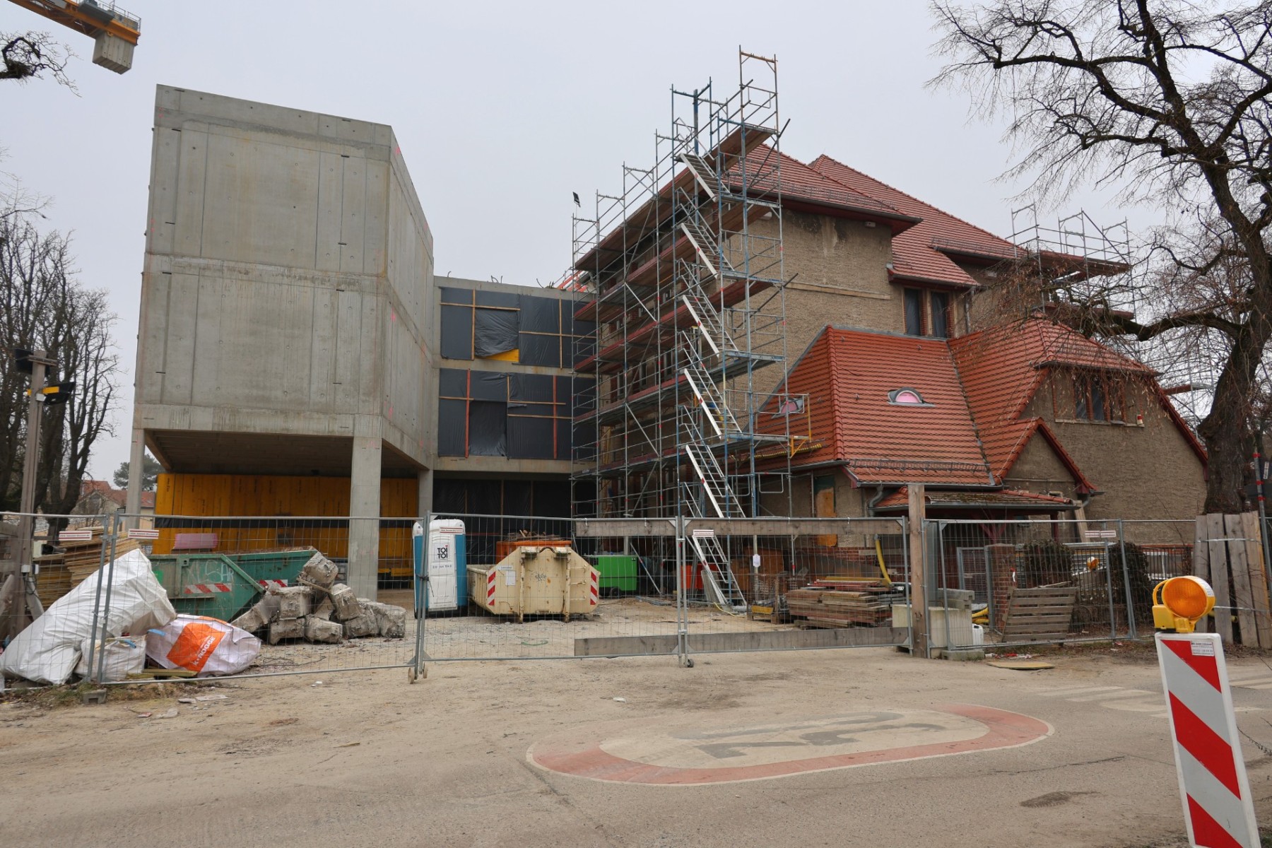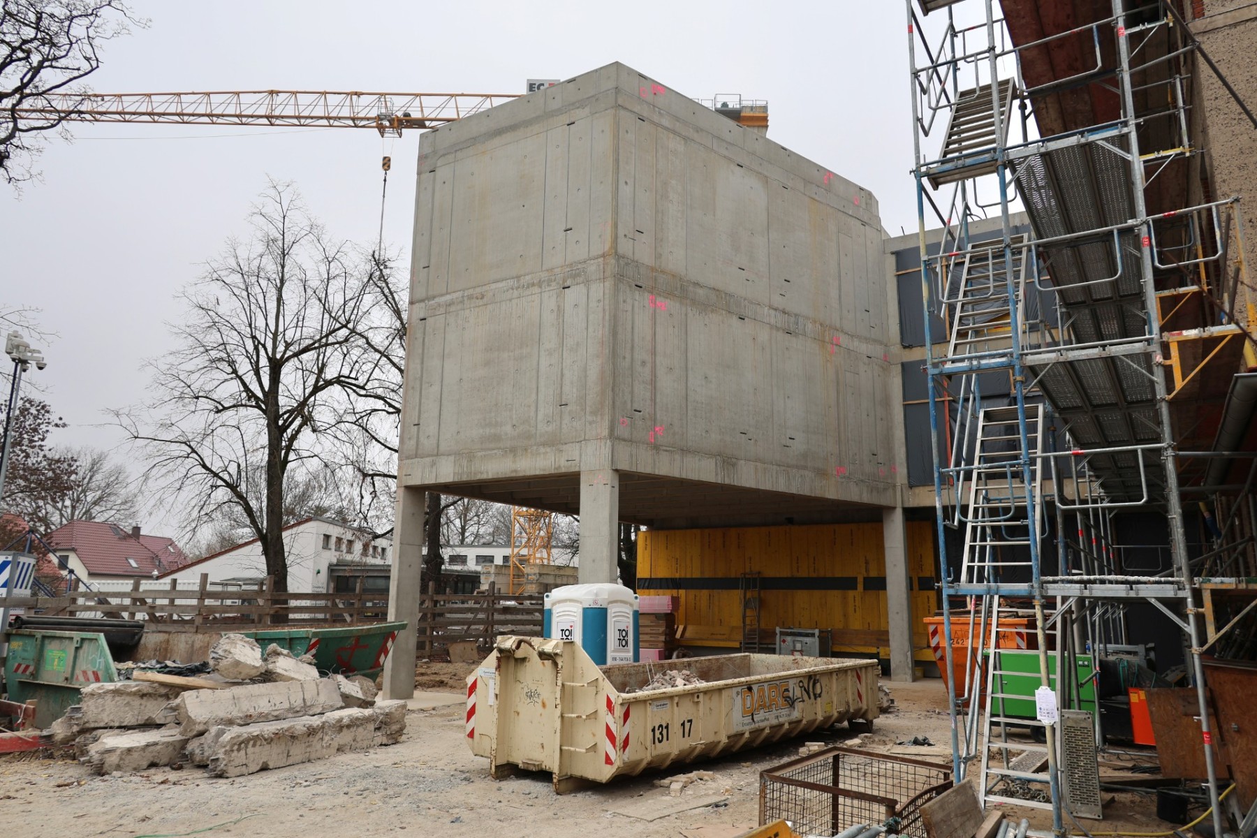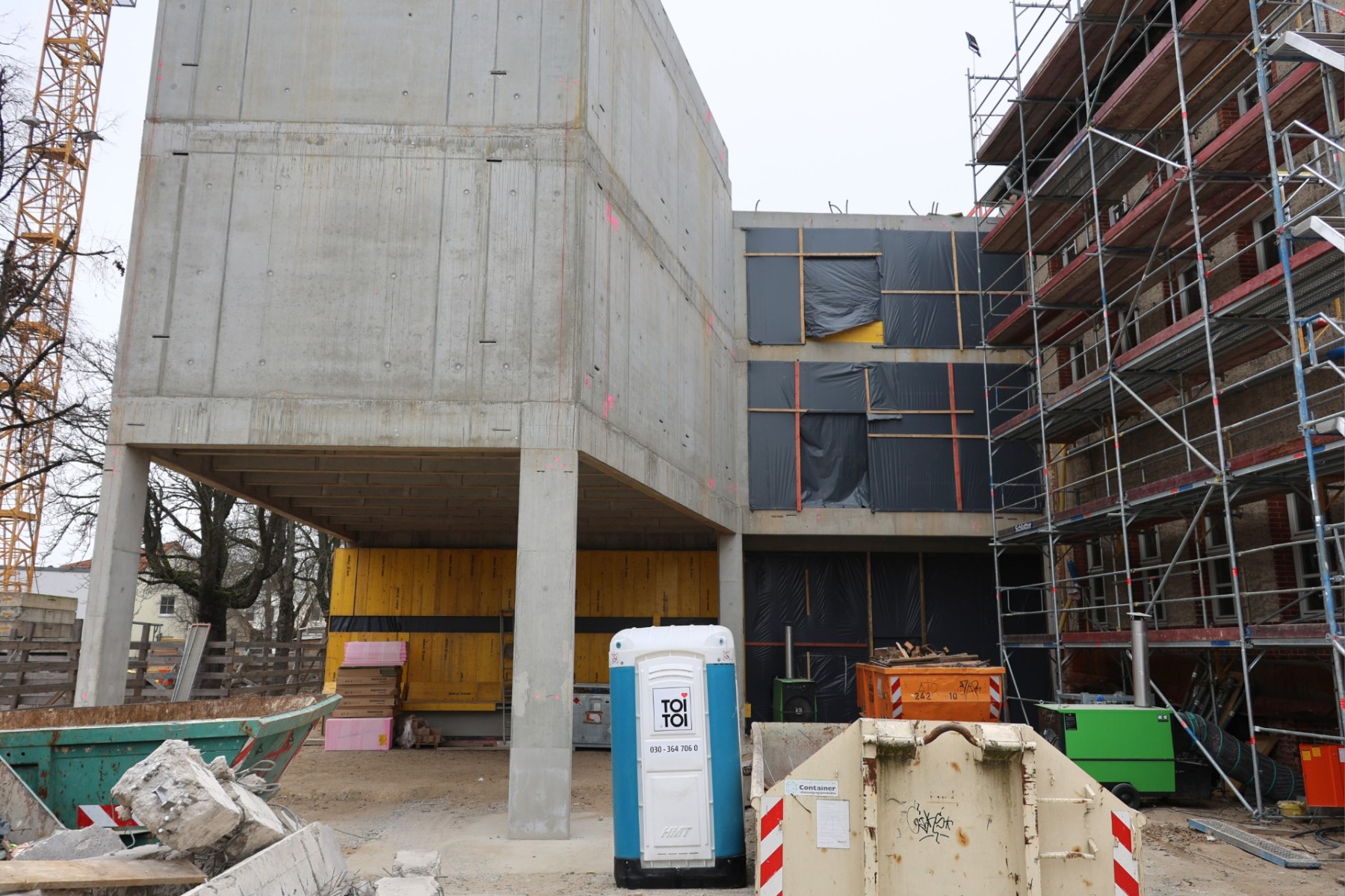 Der neue Erweiterungsbau ergänzt das denkmalgeschützte Schulgebäude und schafft zusätzliche Kapazitäten für zeitgemäßen Unterricht. Vorgesehen sind moderne Fachräume, eine Lehrküche sowie eine Aula. Ergänzt wird das Raumangebot durch einen Bewegungsraum und einen überdachten Lichthof, der Raum für „Kunst am Bau“ bietet. Auch Aspekte der Nachhaltigkeit fließen in das Projekt ein: Eine Photovoltaikanlage sowie eine Dachbegrünung gehören zum Energiekonzept des Neubaus.