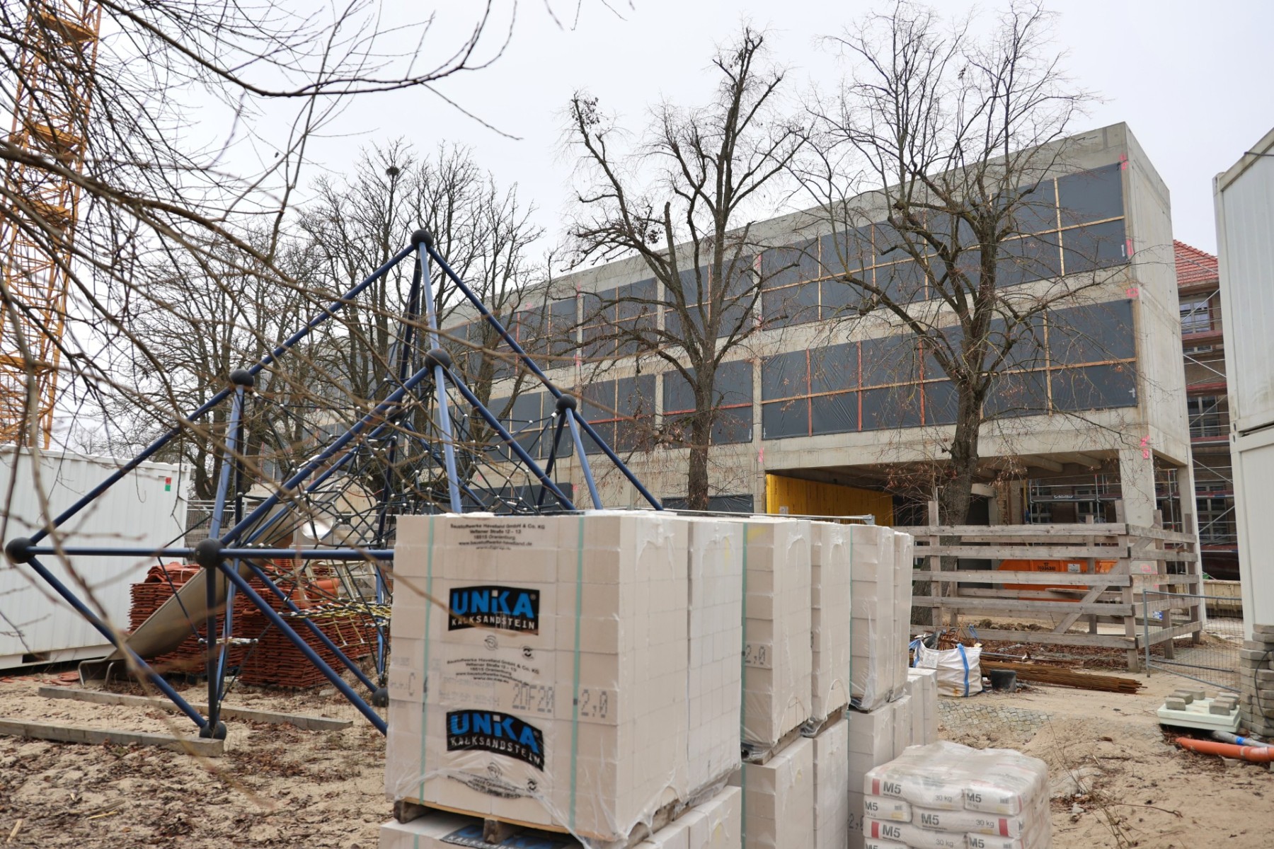 Parallel zu den Hochbauarbeiten wird auch das Außengelände neugestaltet. Geplant sind ein neuer Schulhof mit Lesegarten sowie ein grünes Klassenzimmer, das Unterricht im Freien ermöglichen soll.