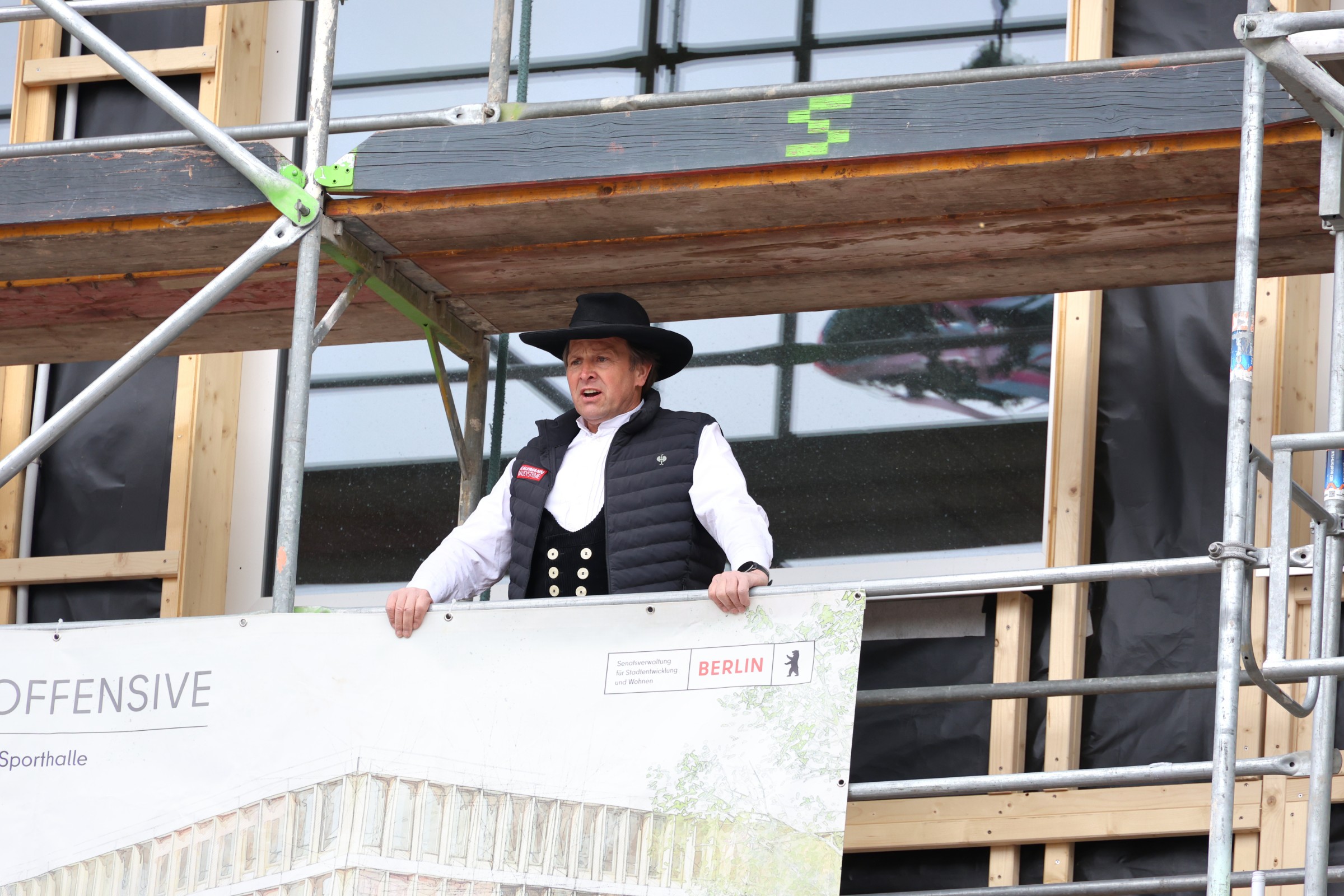 Zu dem feierlichen Anlass versammelten sich hochrangige Vertreter aus Politik und Bauwesen: Senator für Stadtentwicklung, Bauen und Wohnen Christian Gaebler, Staatssekretär für Schulbau und Schuldigitalisierung Dr. Torsten Kühne, Bezirksbürgermeisterin Nadja Zivkovic, Schulstadtrat Stefan Bley sowie Architekt Andreas Krawczyk gaben gemeinsam den symbolischen Startschuss für die Endphase des Rohbaus.