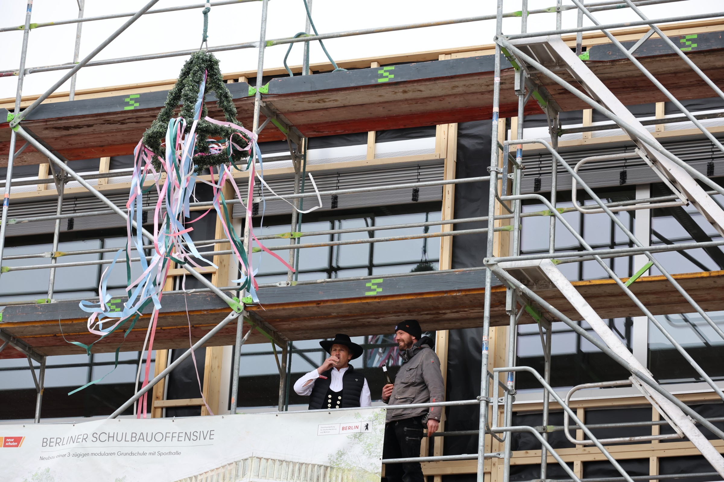 In der Haltoner Straße 24 in Marzahn-Hellersdorf wurde heute die Richtkrone auf einen zukunftsweisenden Schulneubau gesetzt. Mit dem Richtfest für die neue Holz-Compartmentschule erreicht eines der bedeutendsten lokalen Bildungsprojekte der jüngeren Zeit einen wichtigen Meilenstein.