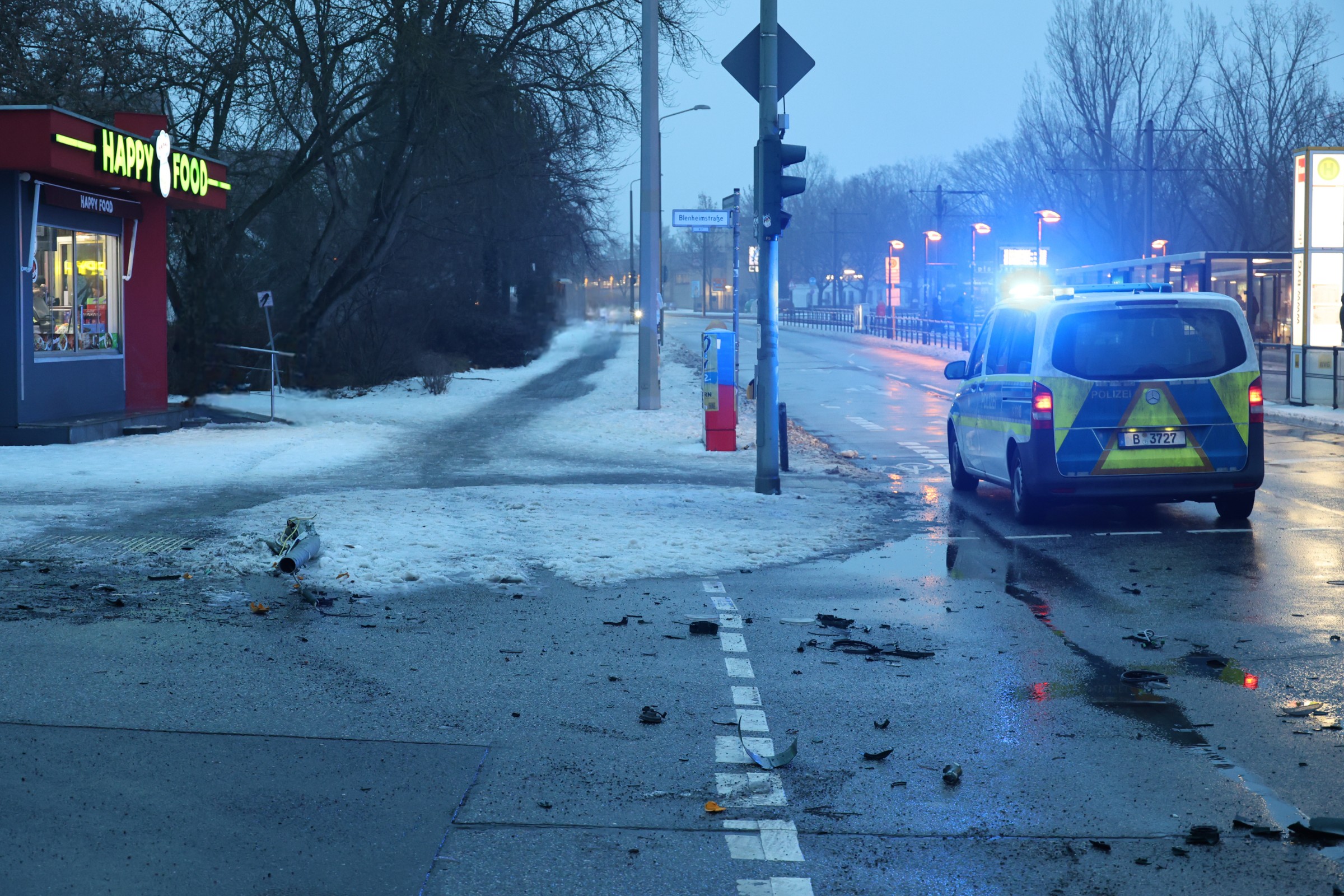 Es folgte eine riskante Verfolgungsfahrt quer durch Marzahn. Dabei kam es zu mehreren Verkehrsunfällen. Unter anderem an der Kreuzung Allee der Kosmonauten/Blenheimstraße fuhr der Flüchtige über den Gehweg, riss eine Fußgängerampel um und brachte Passanten in Gefahr, die zur Seite springen mussten. Trotz des Unfalls setzte der Mann seine Fahrt fort, bog in die Poelchaustraße ab und fuhr später an der Märkischen Allee wiederholt über den Gehweg, überquerte beide Fahrspuren samt Mittelinsel und flüchtete weiter über rote Ampeln in Richtung B1/B5 Alt-Friedrichsfelde.