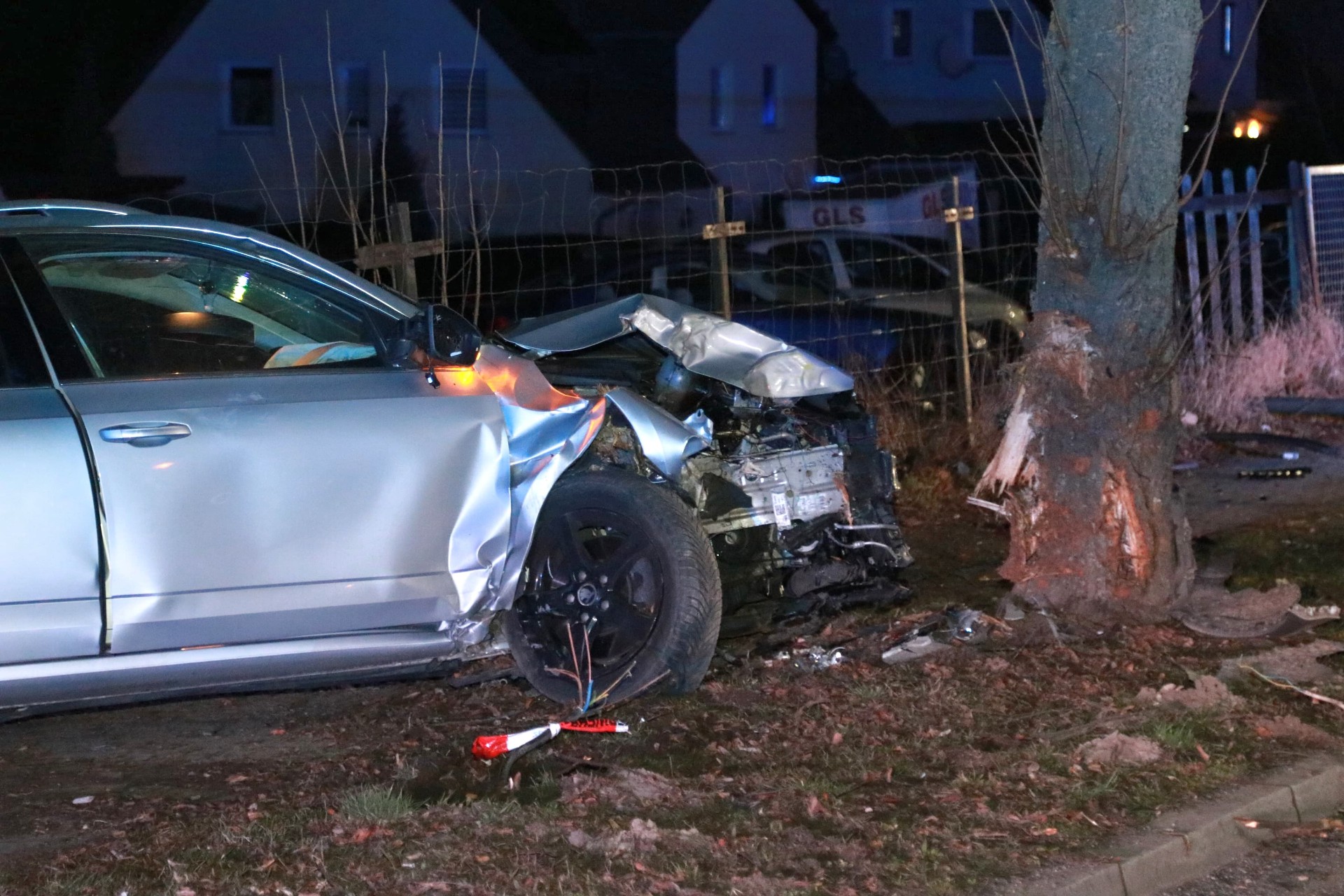 Ein Skoda-Fahrer aus Berlin verlor nach bisherigen Ermittlungen gegen 1:50 Uhr auf der Märkischen Allee in Fahrtrichtung Dorfstraße in einer Rechtskurve aus bislang ungeklärter Ursache die Kontrolle über sein Fahrzeug.