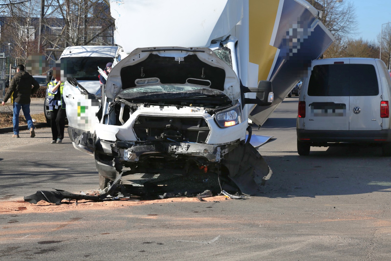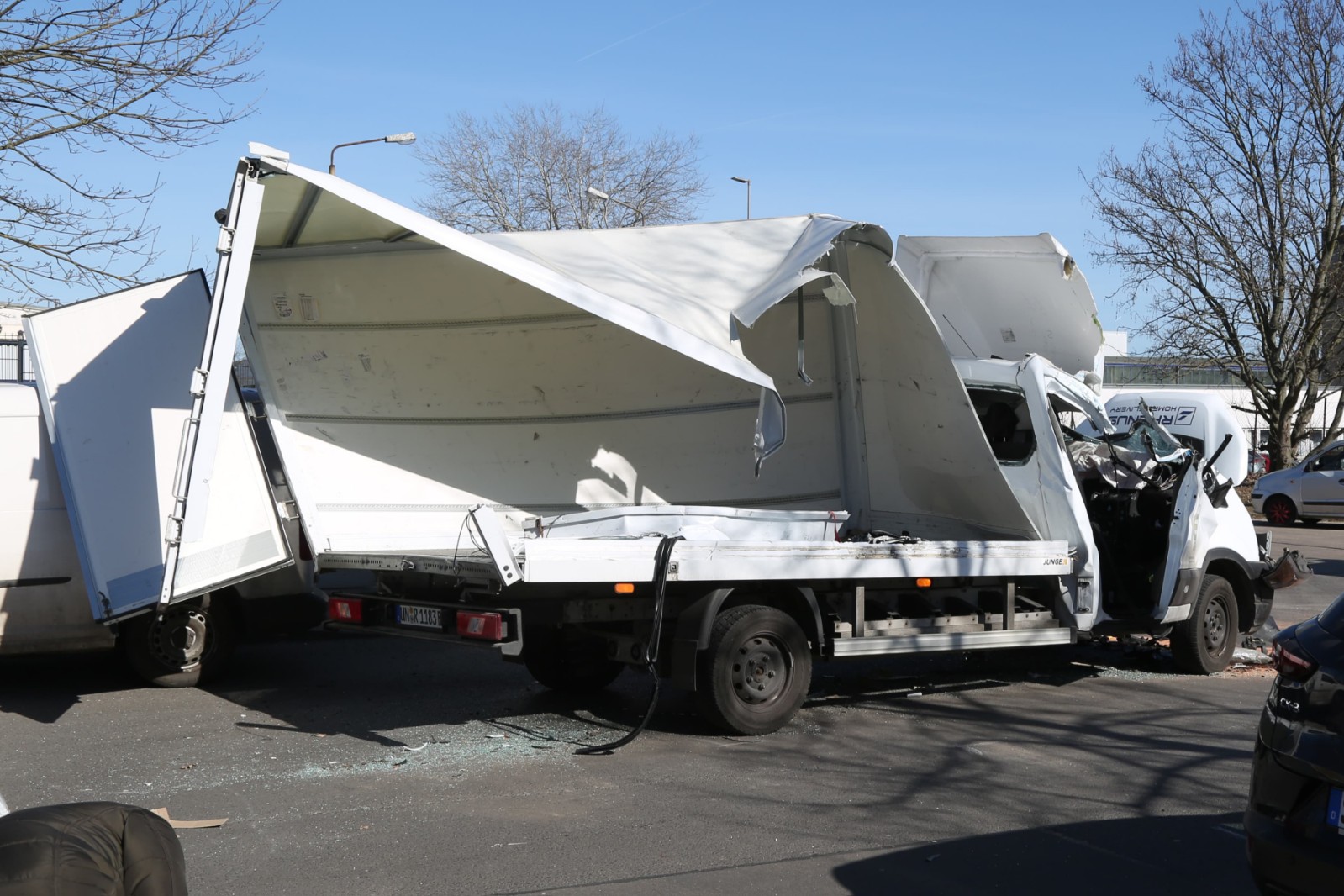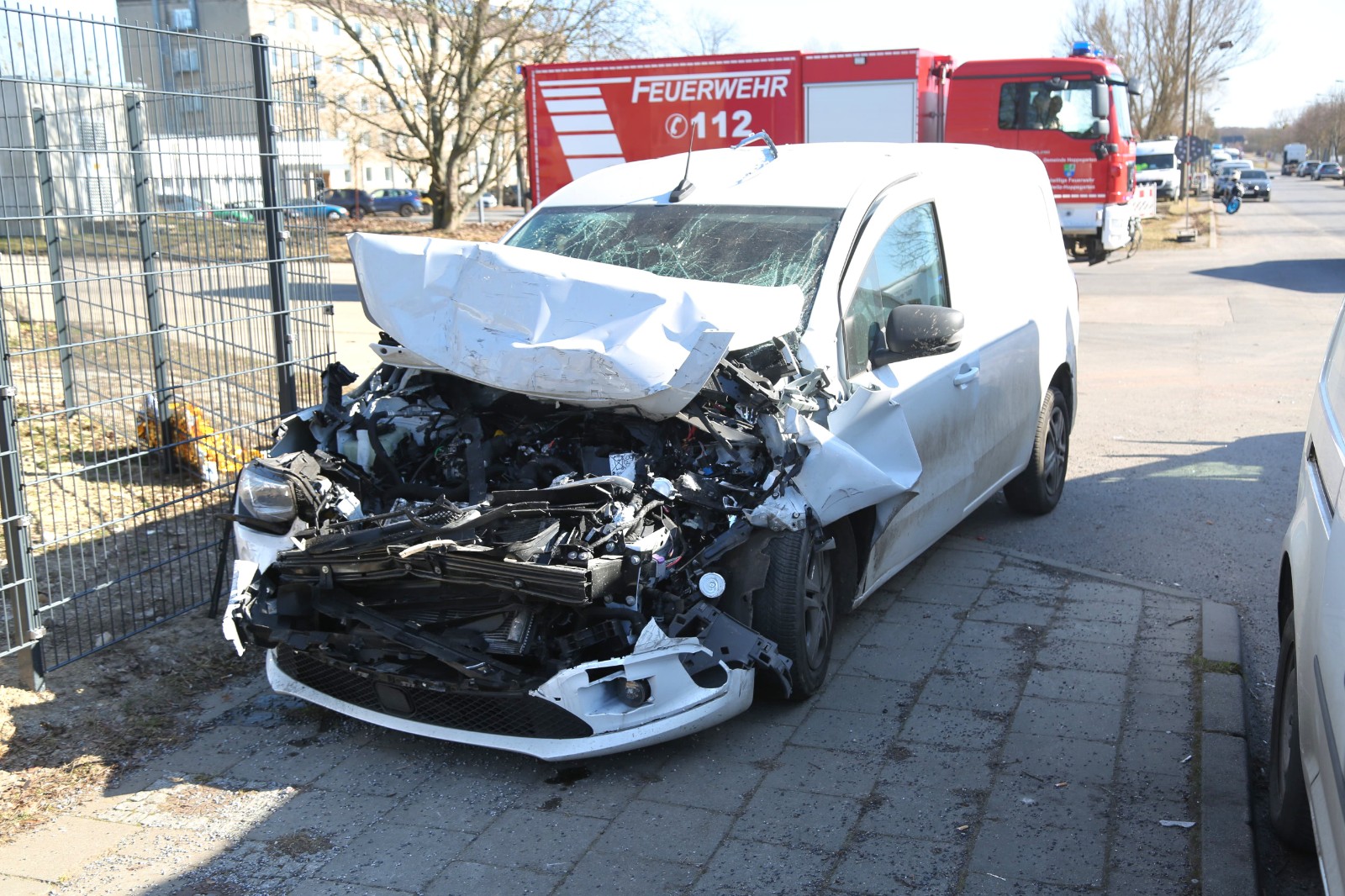 Durch die Wucht des Aufpralls wurden zusätzlich ein weiterer Pkw sowie ein Lastwagen des Entsorgungsunternehmens ALBA in den Unfall hineingezogen.