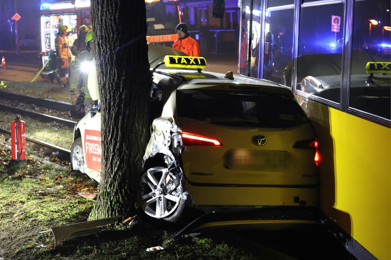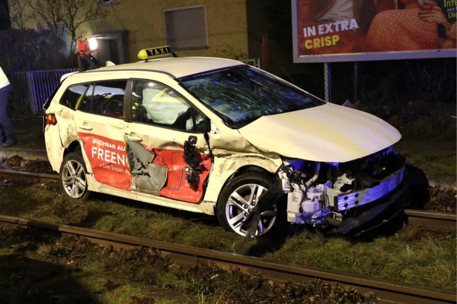 Die Fahrgäste der Tram blieben nach bisherigen Informationen unverletzt. Der Taxifahrer erlitt Verletzungen im Bereich des Rumpfes und der Arme und wurde von alarmierten Rettungskräften zur stationären Behandlung in ein Krankenhaus gebracht. Der 56-jährige Straßenbahnfahrer erlitt einen Schock und wurde noch an der Unfallstelle ambulant versorgt.