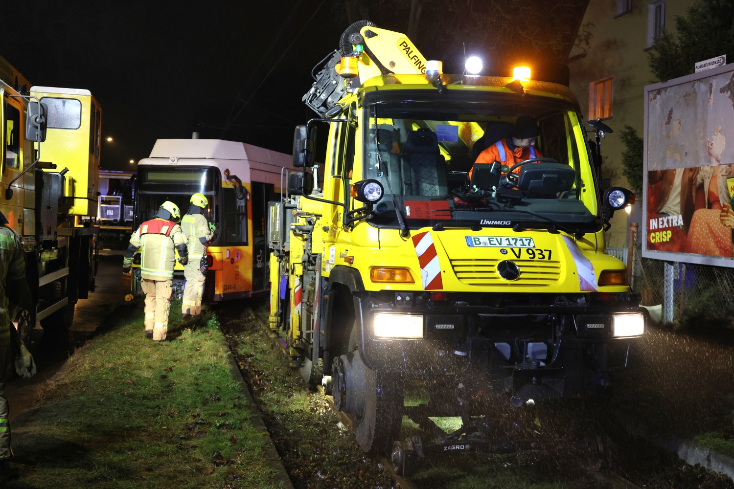 Die Freiwillige Feuerwehr Kaulsdorf stellte den Brandschutz sicher und unterstützte die Berliner Verkehrsbetriebe bei den Bergungsarbeiten. Das stark beschädigte Taxi war zwischen einem Baum und der Straßenbahn eingeklemmt. Zum Einsatz kamen unter anderem ein Unimog sowie ein Kran der BVG.