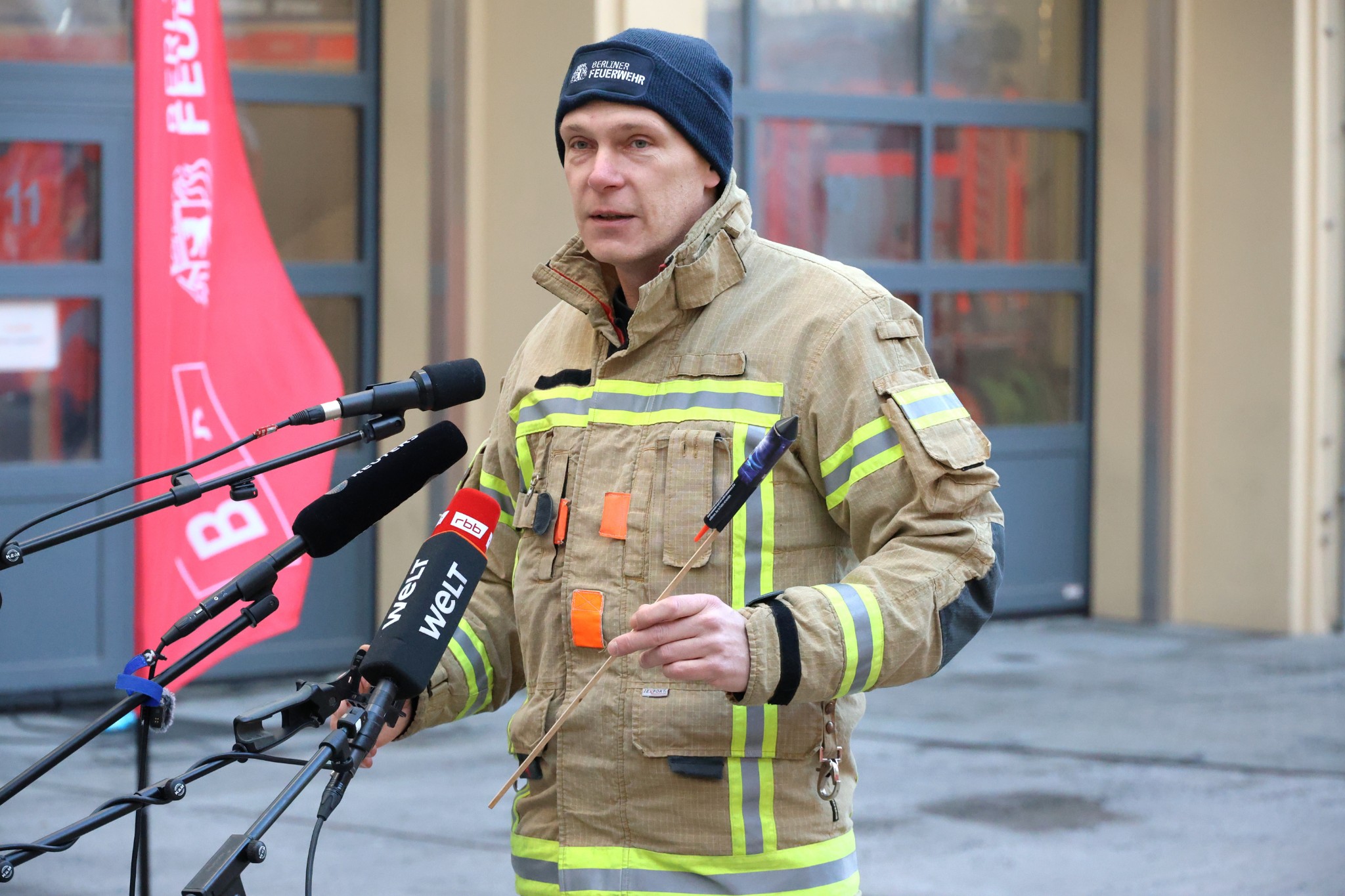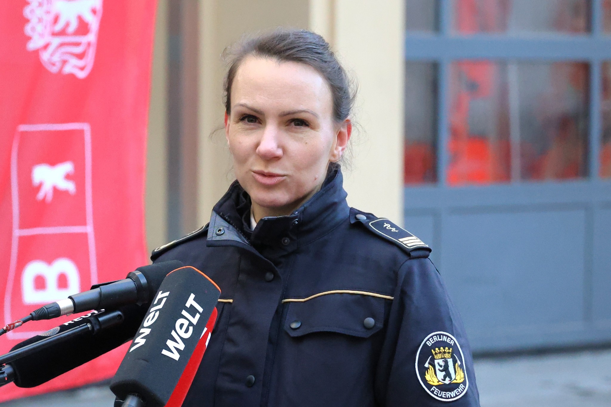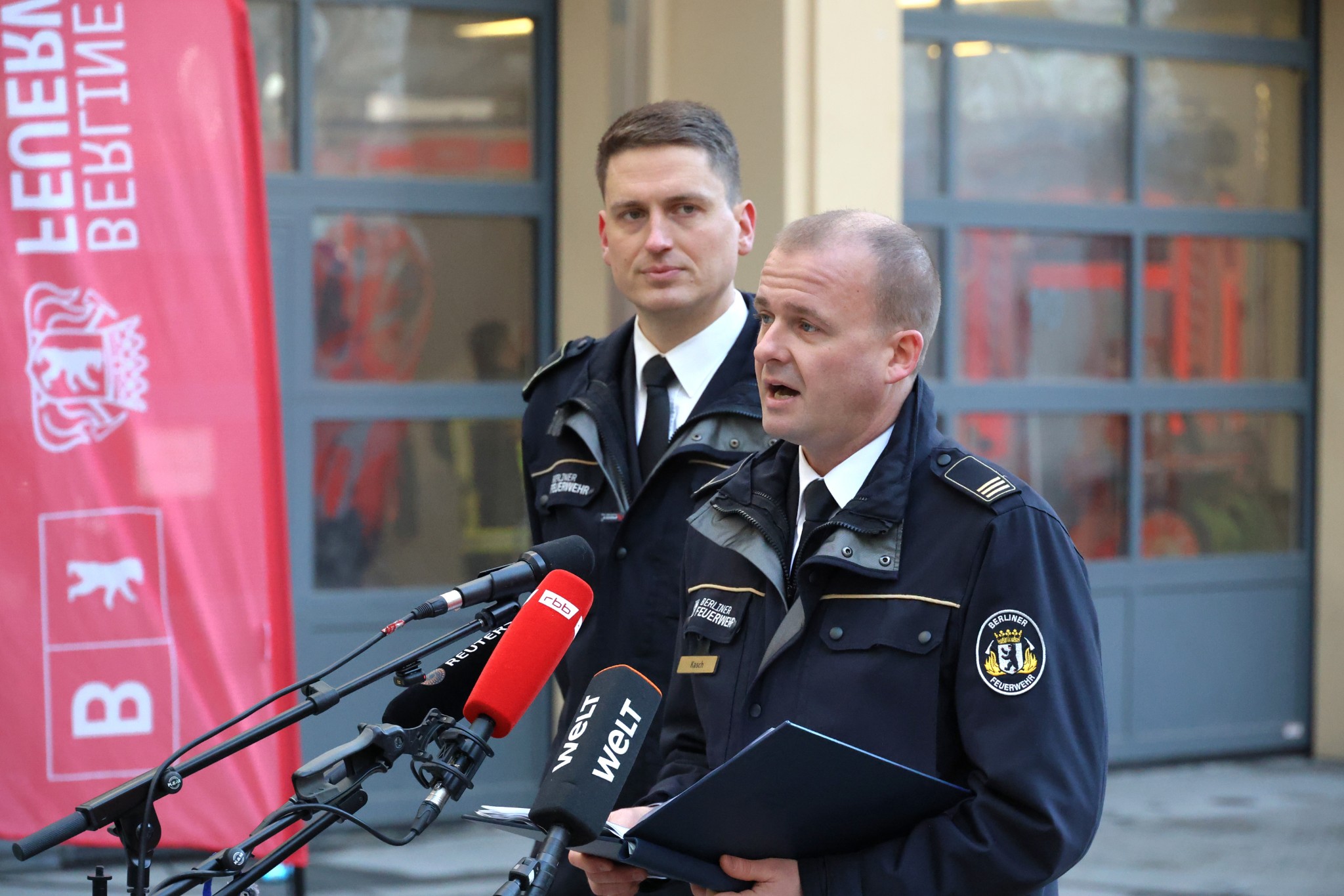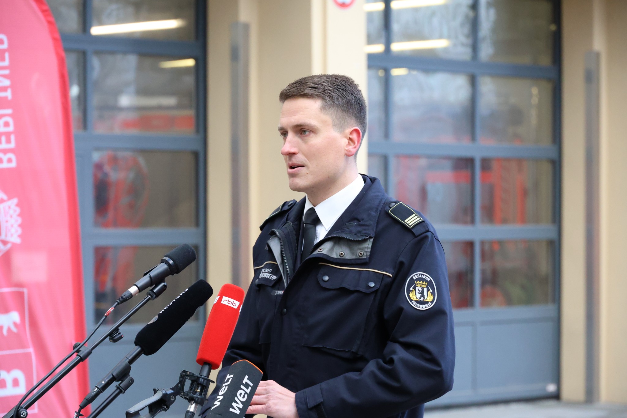 Pressedienst, eröffnete die Pressekonferenz der Berliner Feuerwehr