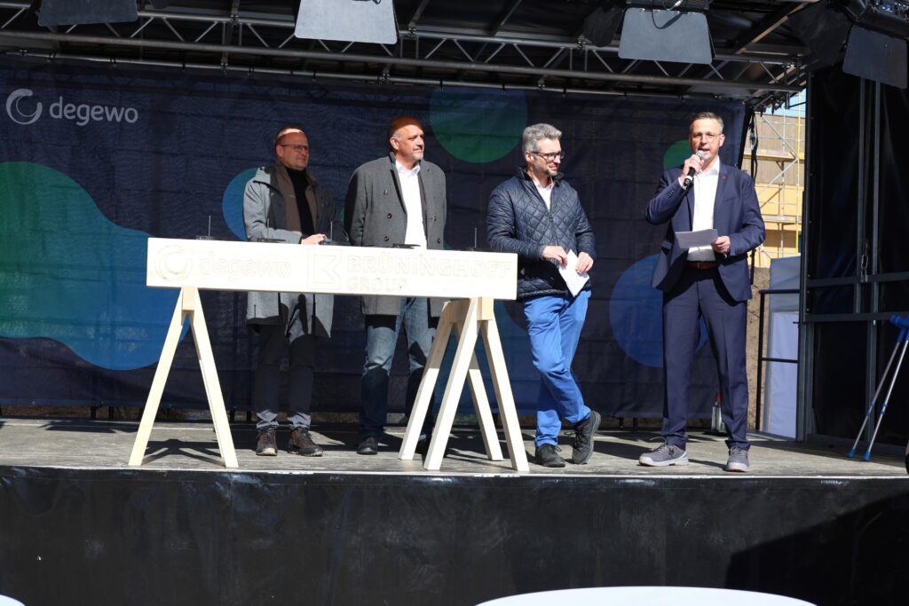 Das kommunale Wohnungsunternehmen degewo hat heute das Richtfest für eines der größten Projekte des sozialen Wohnungsbaus im Bezirk Marzahn-Hellersdorf gefeiert.