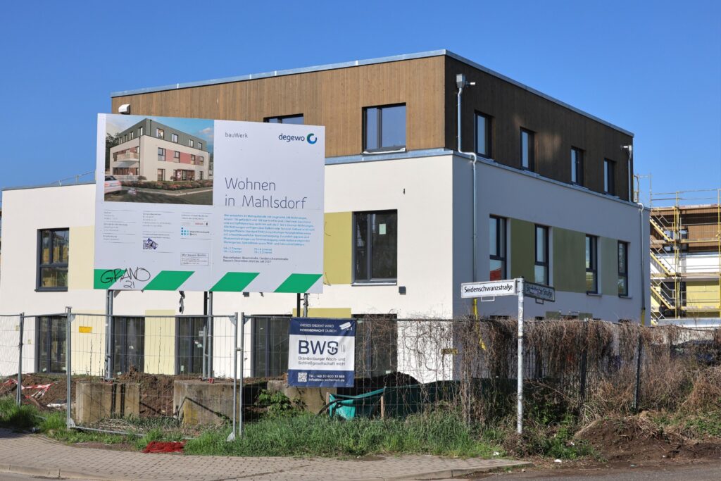 An der Bisamstraße in Mahlsdorf entsteht auf einem rund zehn Hektar großen Areal ein komplett neues Wohnquartier mit insgesamt 248 Mietwohnungen.
