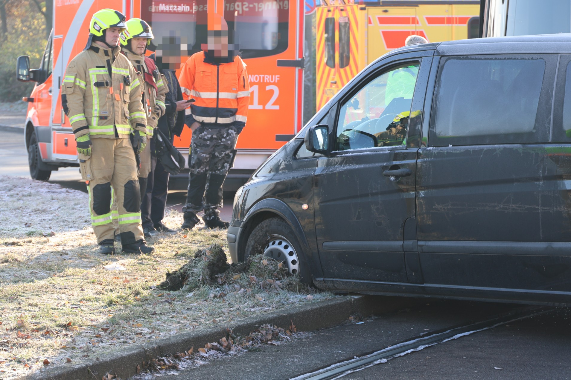 Alarmierte Kräfte der Berliner Feuerwehr, der BVG und der Berliner Polizei trafen schnell an der Unfallstelle ein. Der Fahrer sowie sein Beifahrer wurden verletzt und vor Ort vom Rettungsdienst behandelt. Die Kameraden der Freiwilligen Feuerwehr Hellersdorf unterstützten gemeinsam mit der Berufsfeuerwehr bei der Bergung und zogen den Transporter zurück auf die Fahrbahn.