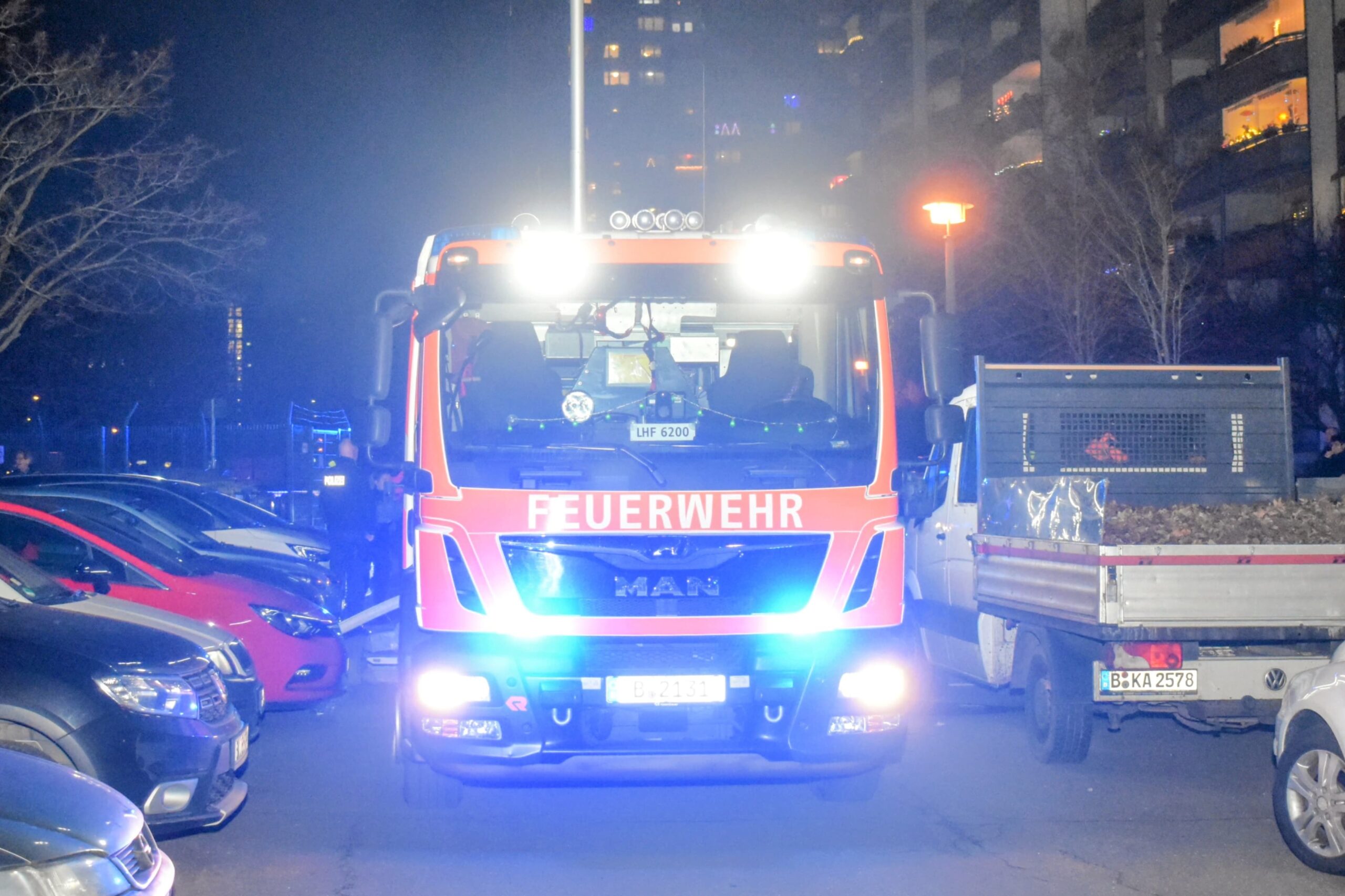 Gegen 16:40 Uhr wurde die Berliner Feuerwehr alarmiert, nachdem ein Tesla auf dem Parkplatz in Flammen stand. Als die ersten Einsatzkräfte eintrafen, stand das Fahrzeug bereits großflächig in Brand. Zuvor hatten zuerst eingetroffene Polizeikräfte versucht, das Feuer mit einem Handfeuerlöscher einzudämmen. Kurz darauf übernahm die Berufsfeuerwehr aus Hellersdorf die Löscharbeiten.