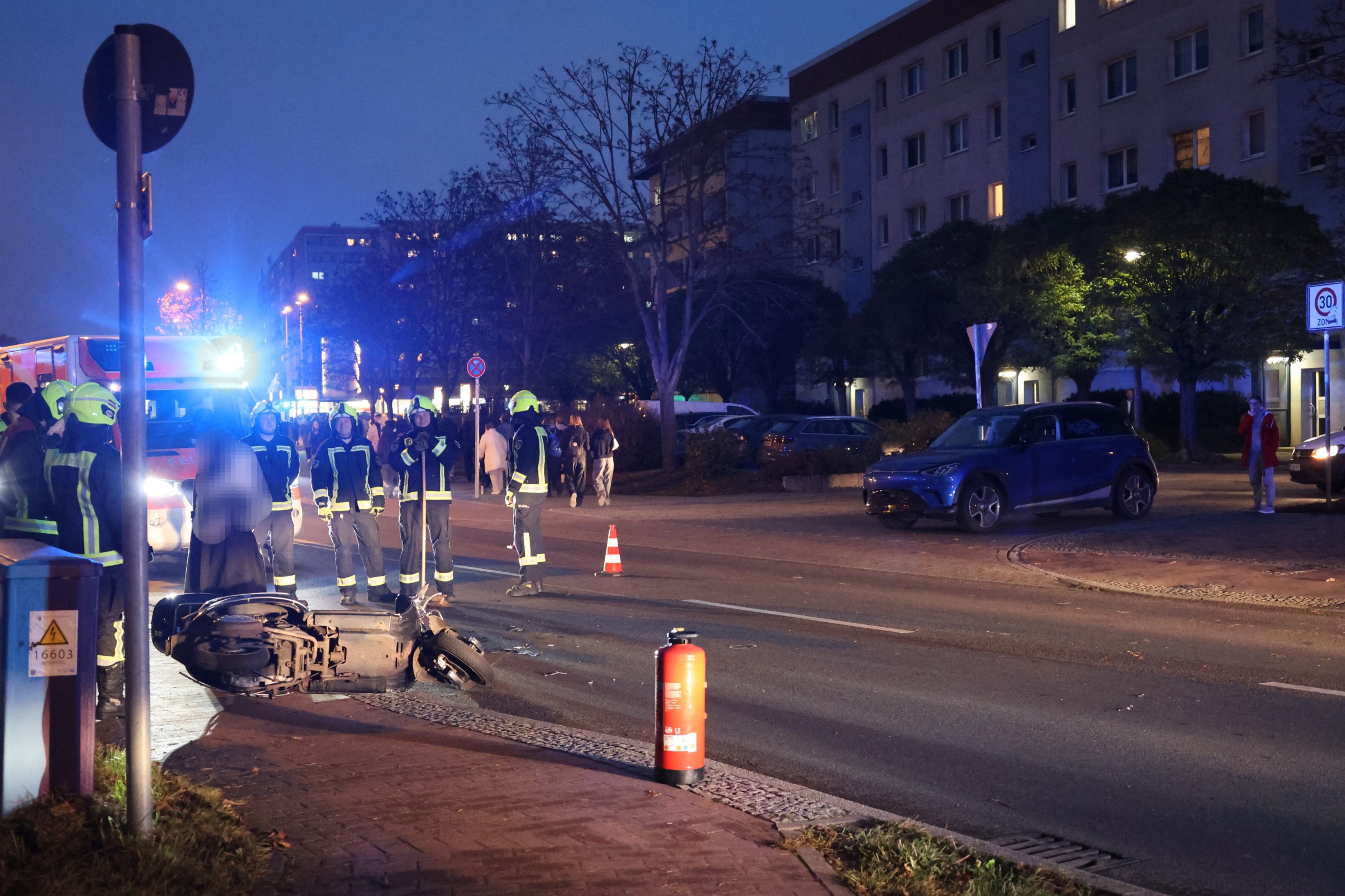 Der Motorrollerfahrer wurde vor Ort im Rettungswagen medizinisch behandelt und anschließend in ein Krankenhaus gebracht. Die Kräfte der Berliner Berufsfeuerwehr räumten die Unfallstelle und banden ausgelaufene Betriebsstoffe ab. Für die Dauer des Einsatzes musste die Alte Hellersdorfer Straße vollständig gesperrt werden.