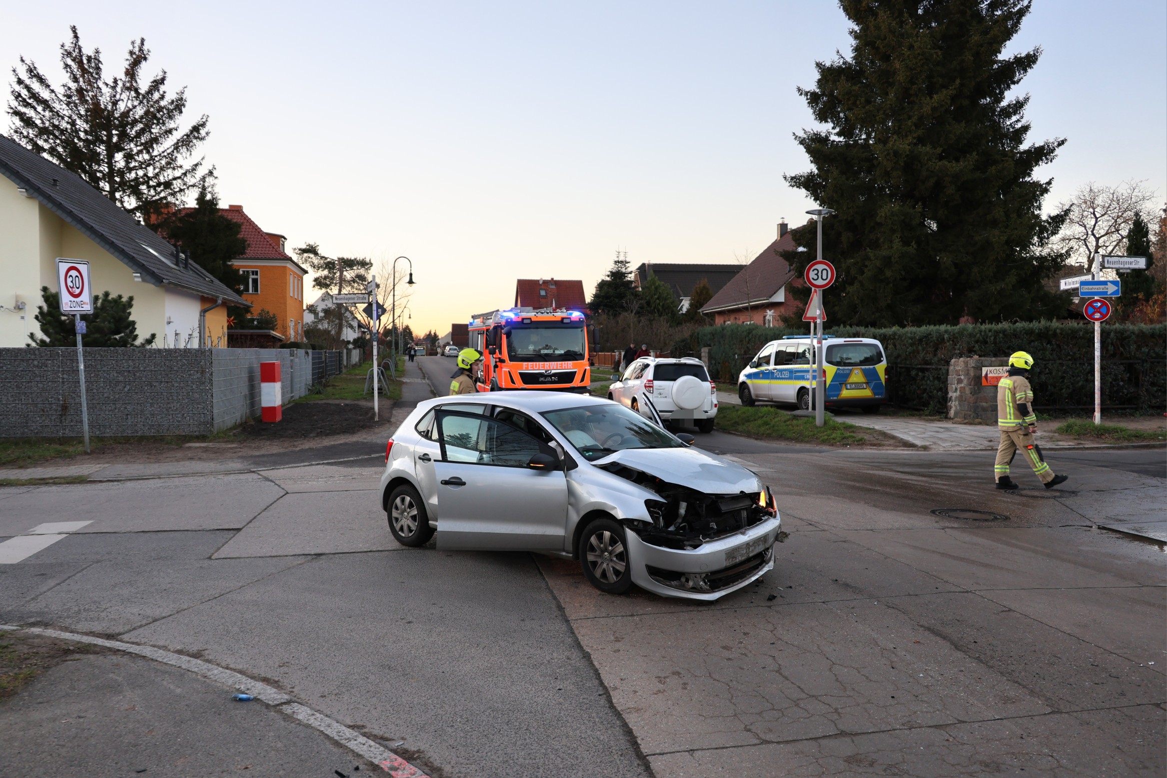 Gegen 15.15 Uhr kam es den bisherigen Informationen zufolge im Kreuzungsbereich Wilhelmsmühlenweg / Neuenhagener Straße zu einer Kollision zwischen zwei Fahrzeugen. Die Berliner Feuerwehr war mit zwei Rettungswagen im Einsatz. Nachdem die Polizei den Unfall aufgenommen hatte, räumte die Berufsfeuerwehr Hellersdorf die Kreuzung.