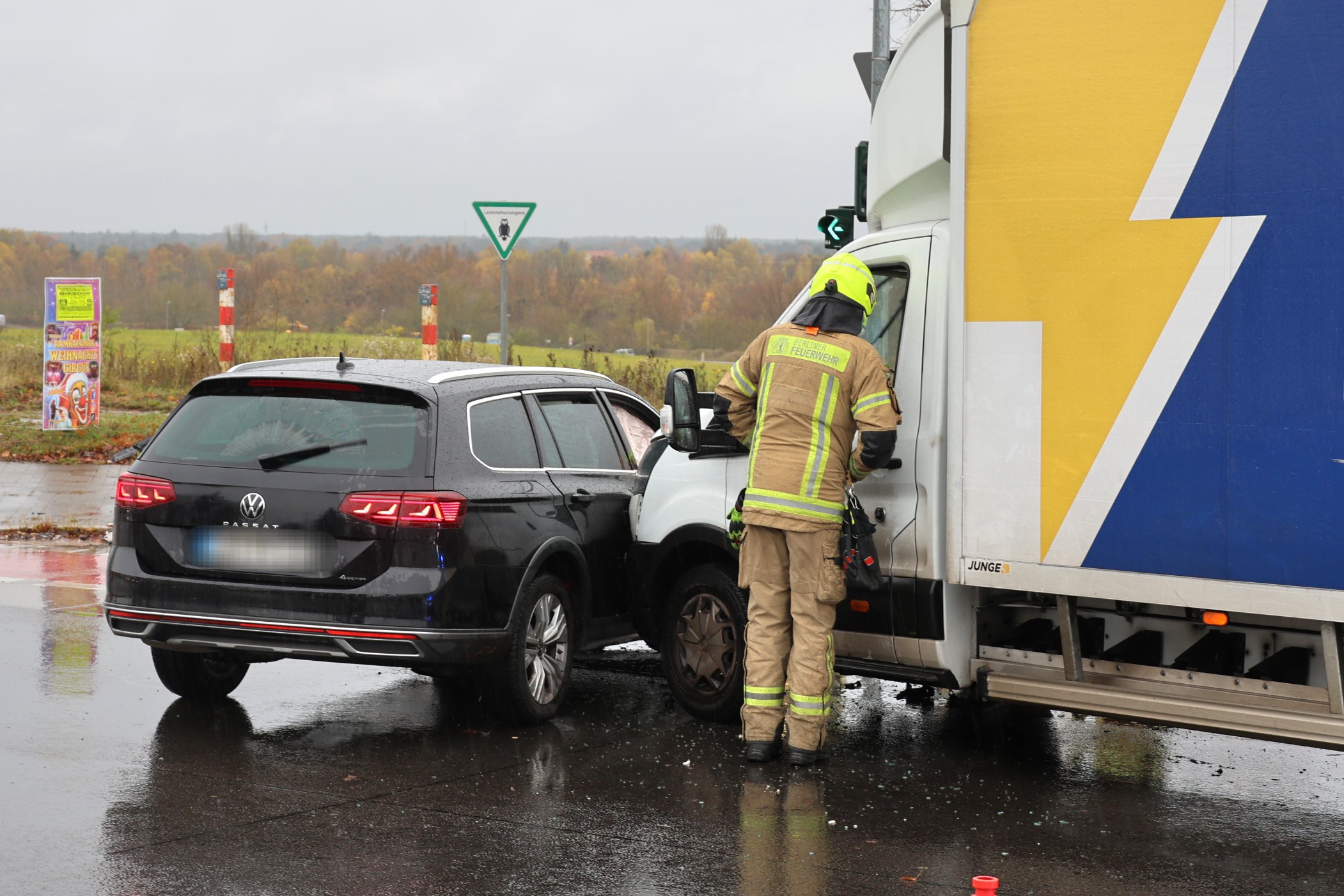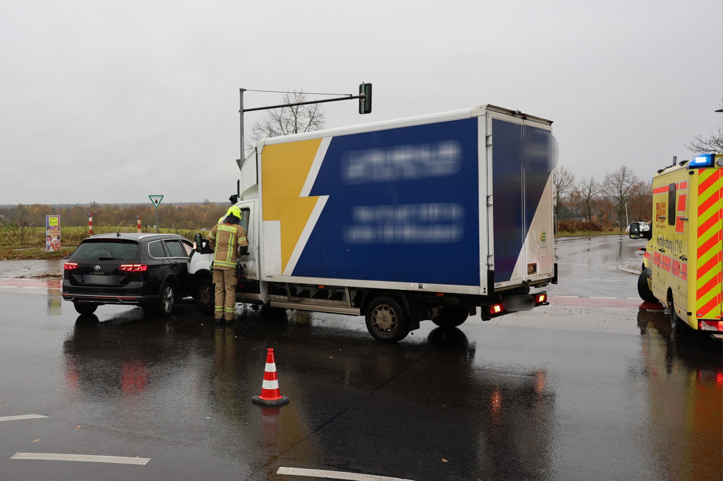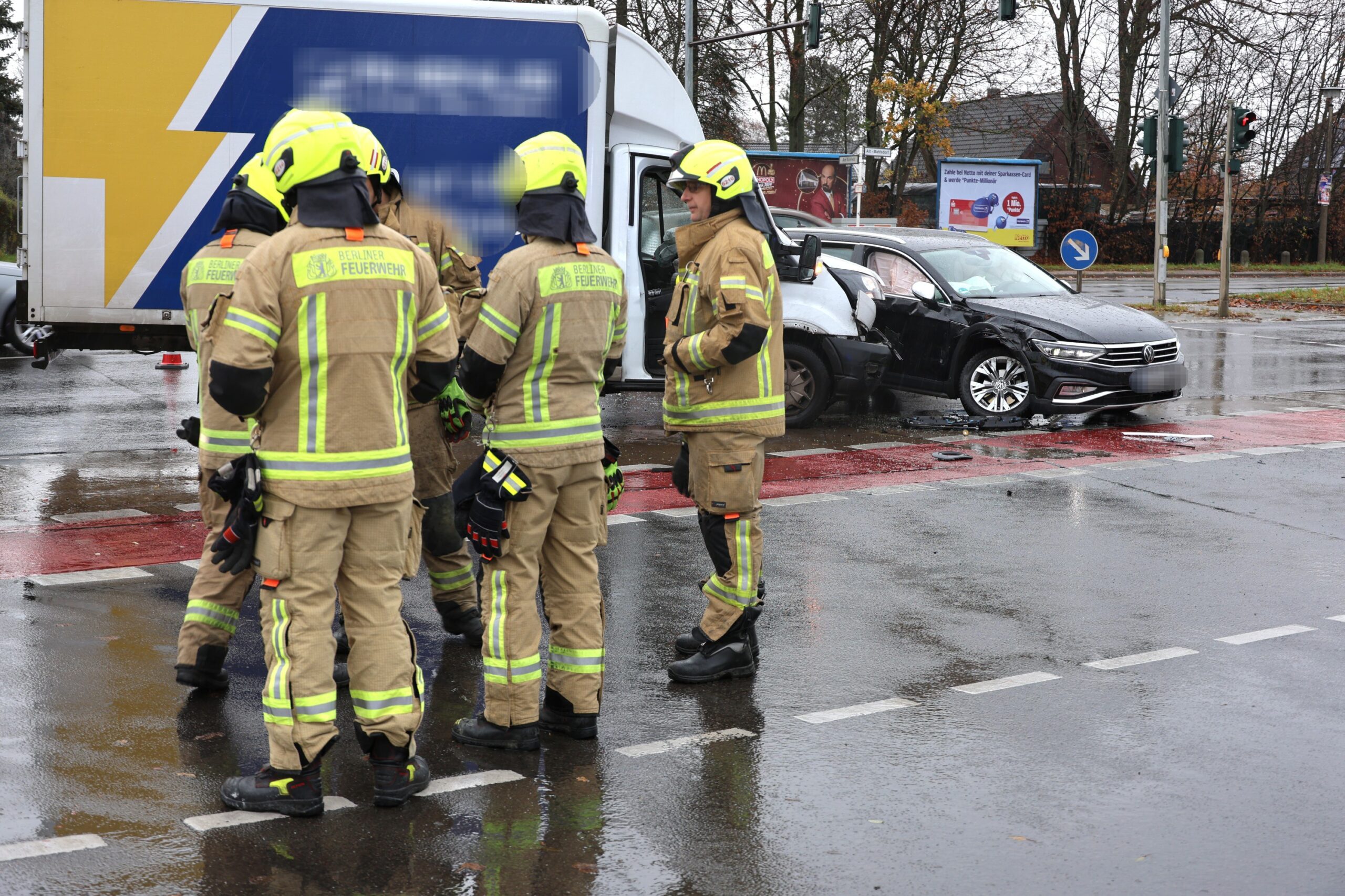 Der Kressenweg war während des Feuerwehreinsatzes gesperrt, der Kreuzungsbereich nur eingeschränkt befahrbar. Die Polizei ermittelt zur Unfallursache.