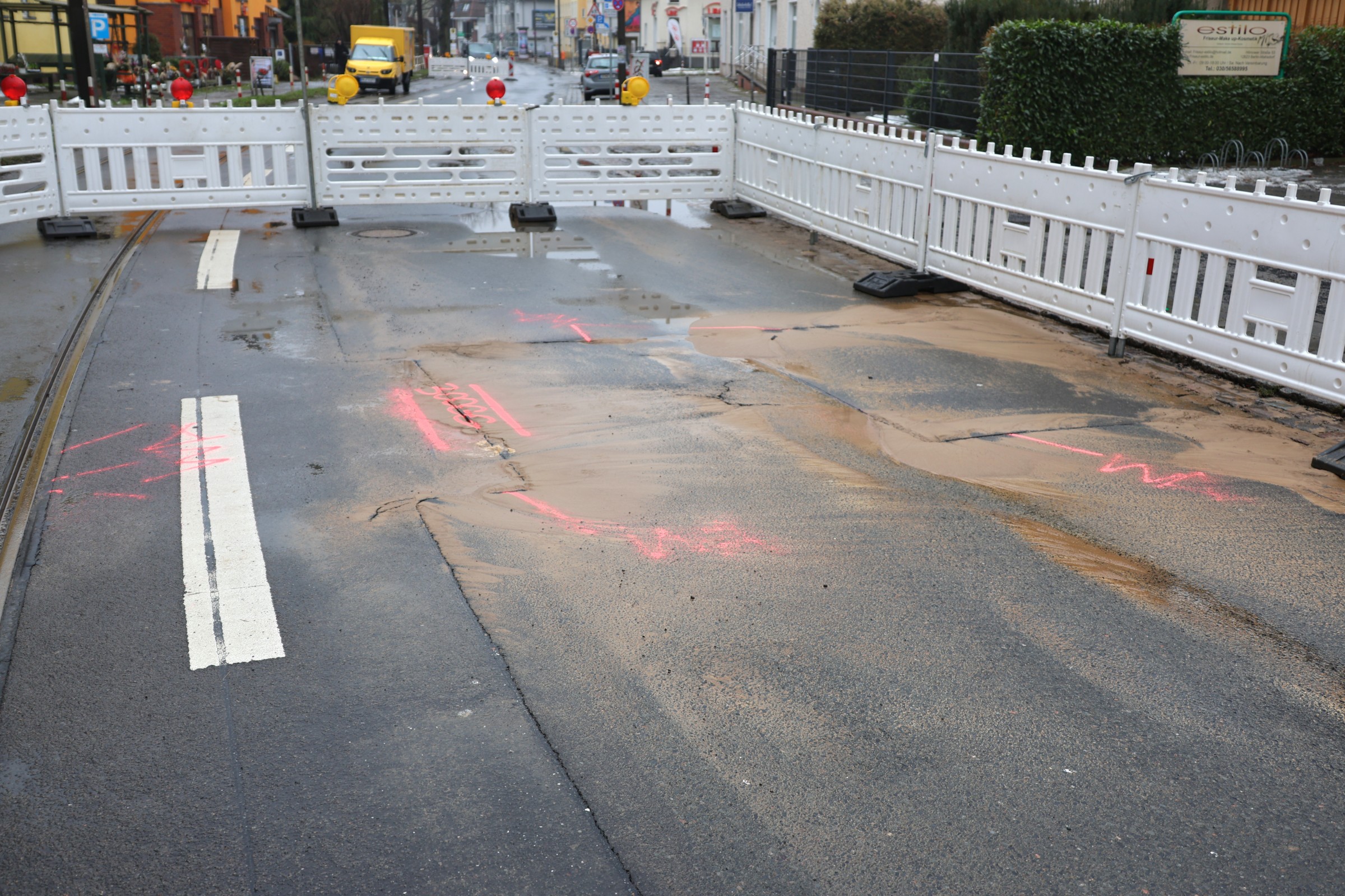 Wasserrohrbruch in Mahlsdorf: Straße voll gesperrt – Tram-Verkehr beeinträchtigt #Update