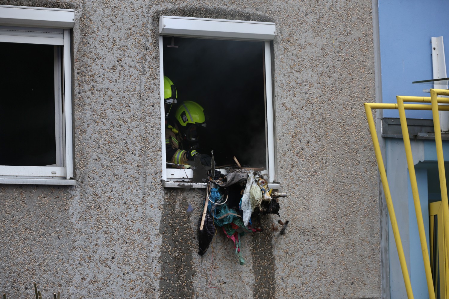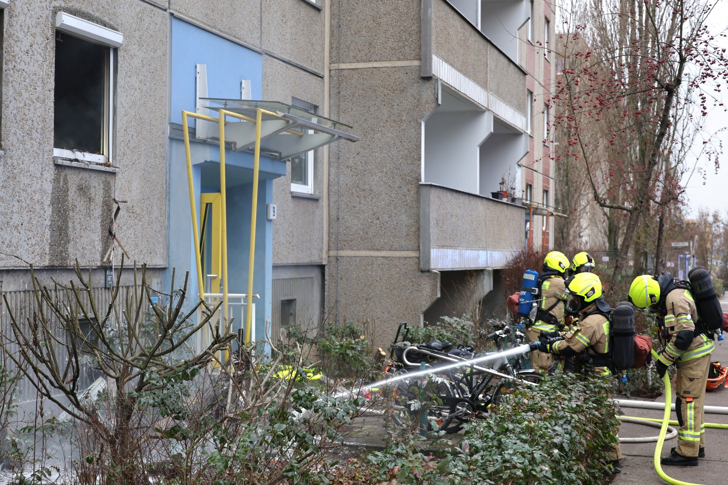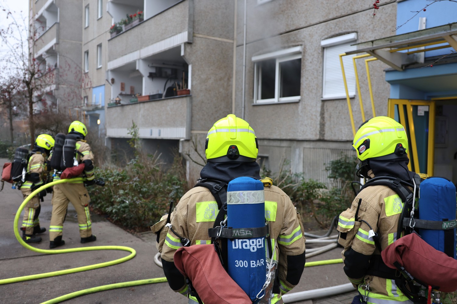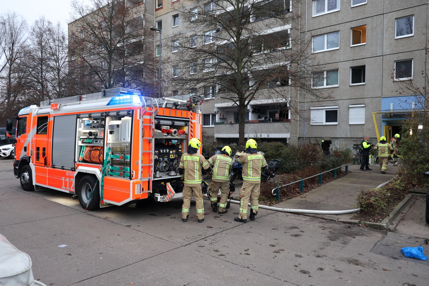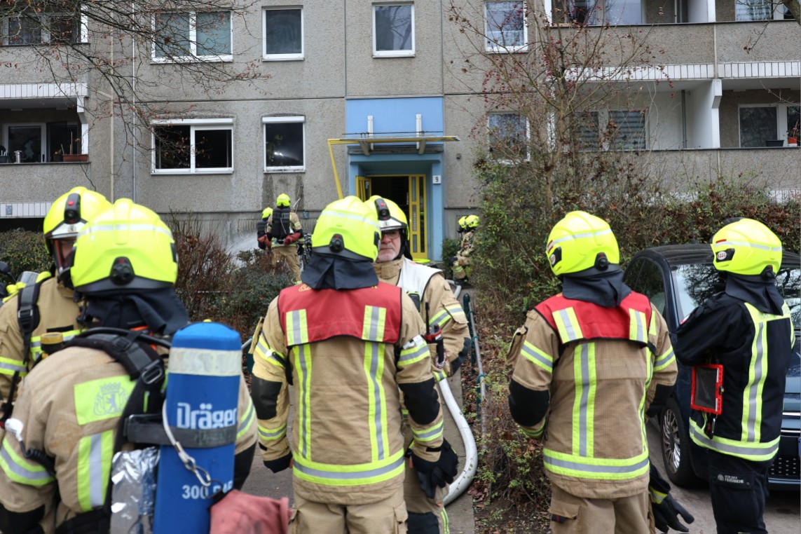 Die Feuerwehr war mit Kräften der Berufsfeuerwehr sowie mehreren Freiwilligen Feuerwehren aus Hellersdorf und Mahlsdorf im Einsatz. Aufgrund der starken Brandbelastung entwickelte sich eine erhebliche Rauchentwicklung. Beim Eintreffen der Einsatzkräfte waren die Rollläden der betroffenen Wohnung noch geschlossen und mussten zunächst gewaltsam geöffnet werden, um den Brand zu bekämpfen.